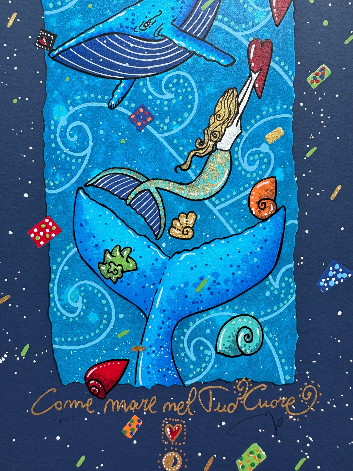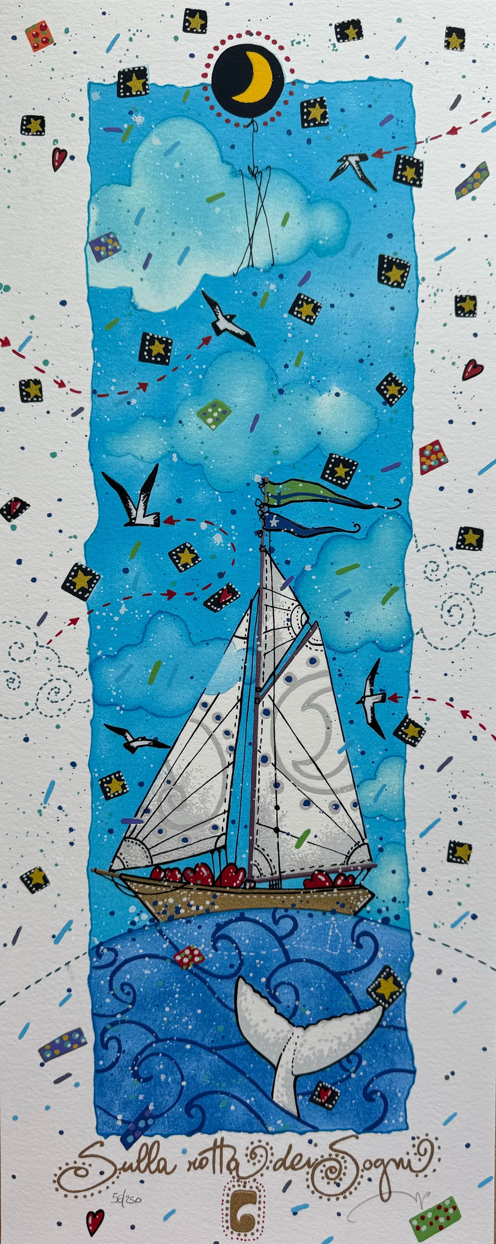 Serigrafia polimaterica di dimensioni 20x50cm, facente parte della nuova cartella "Segui la rotta del cuore".