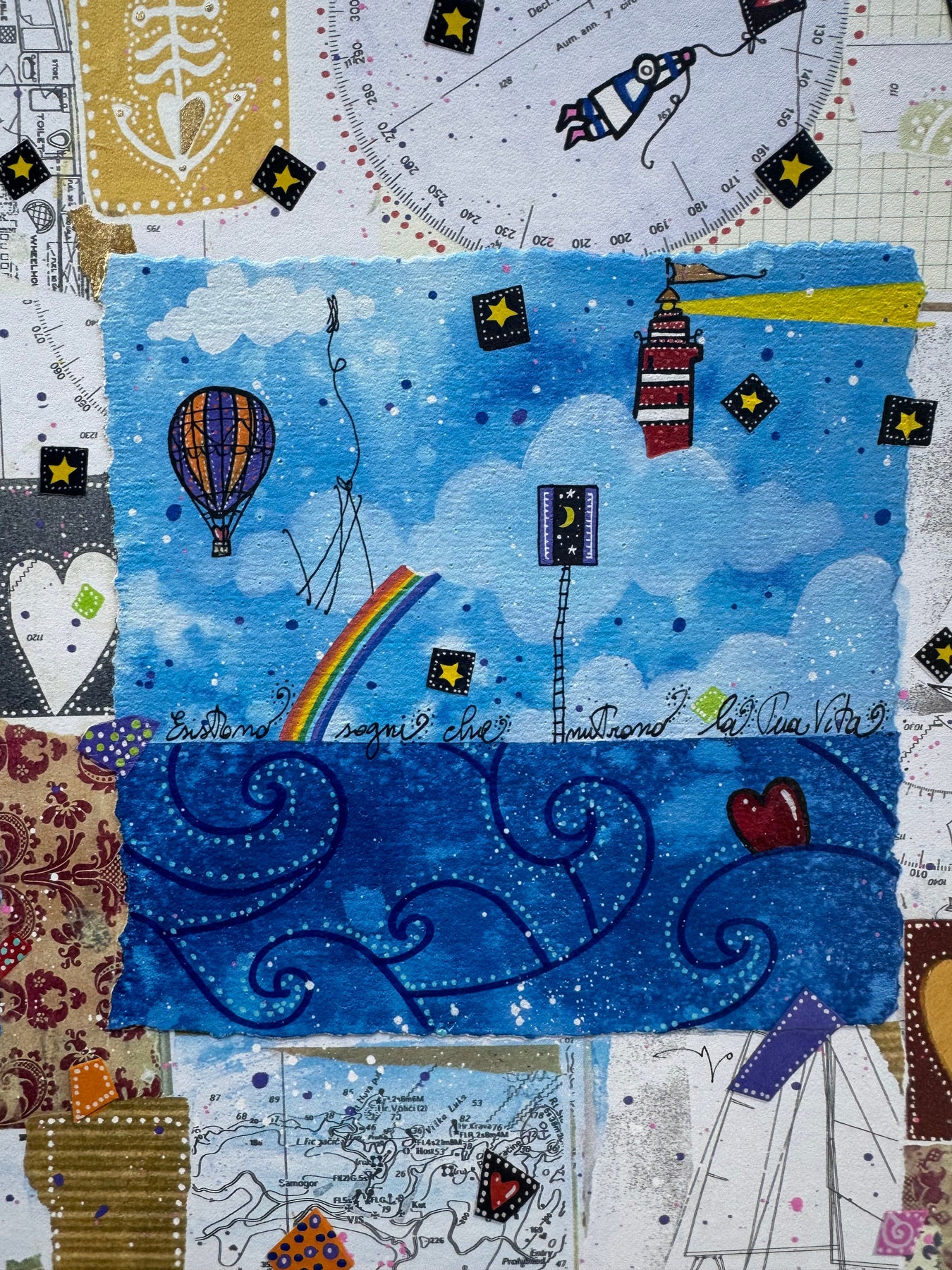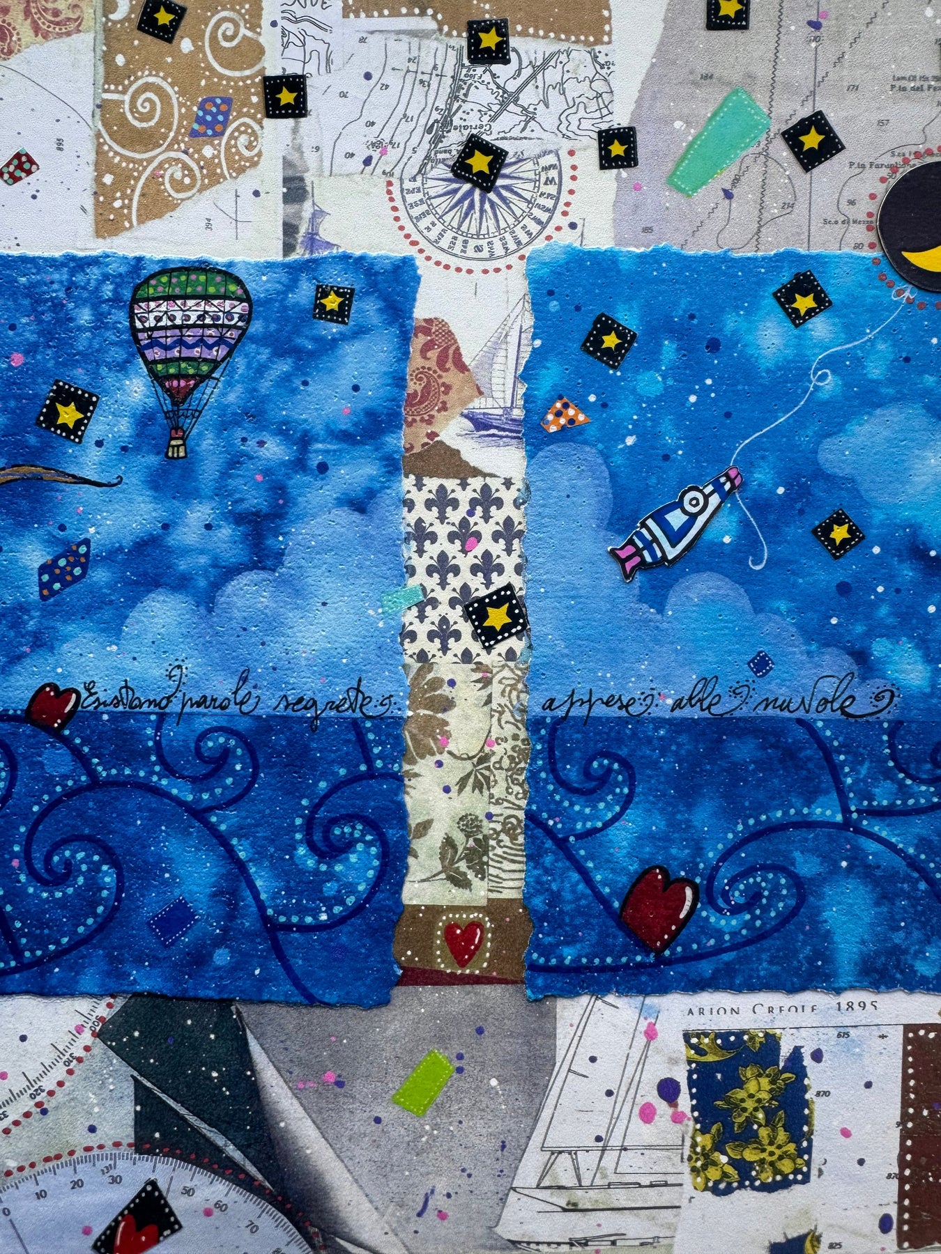 Serigrafia, foglia oro e collage |