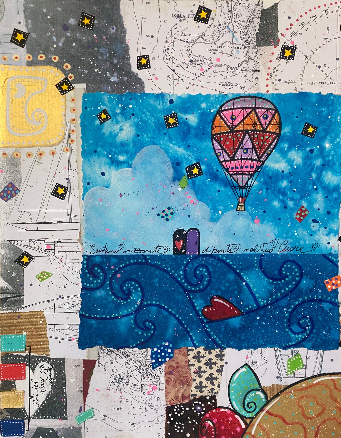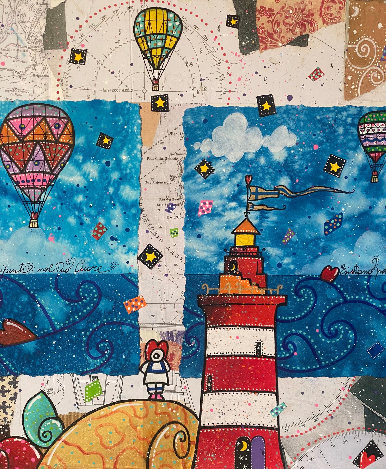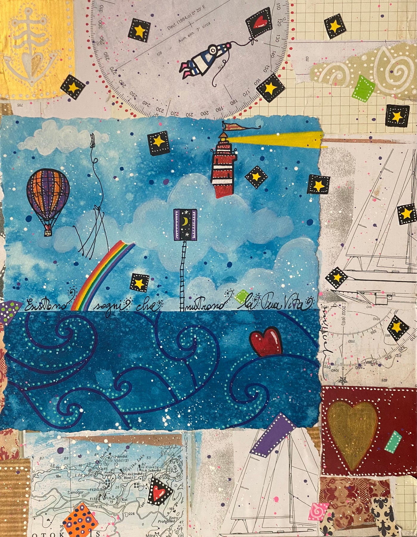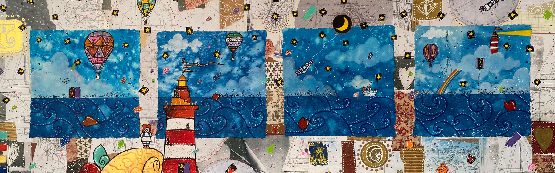 Tecnica mista e collage su cartoncino di dimensioni 50x150cm