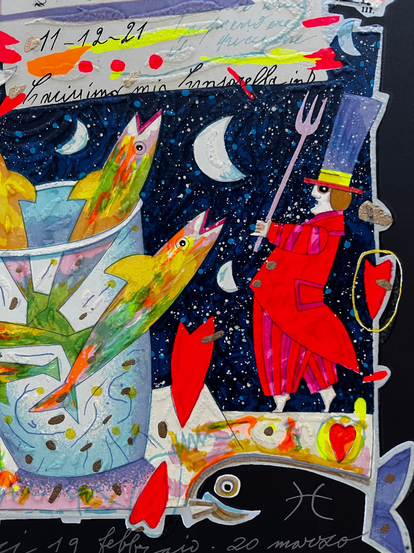 Serigrafia polimaterica del Maestro Francesco Musante con foglia oro, foglia argento, glitter e metalli.