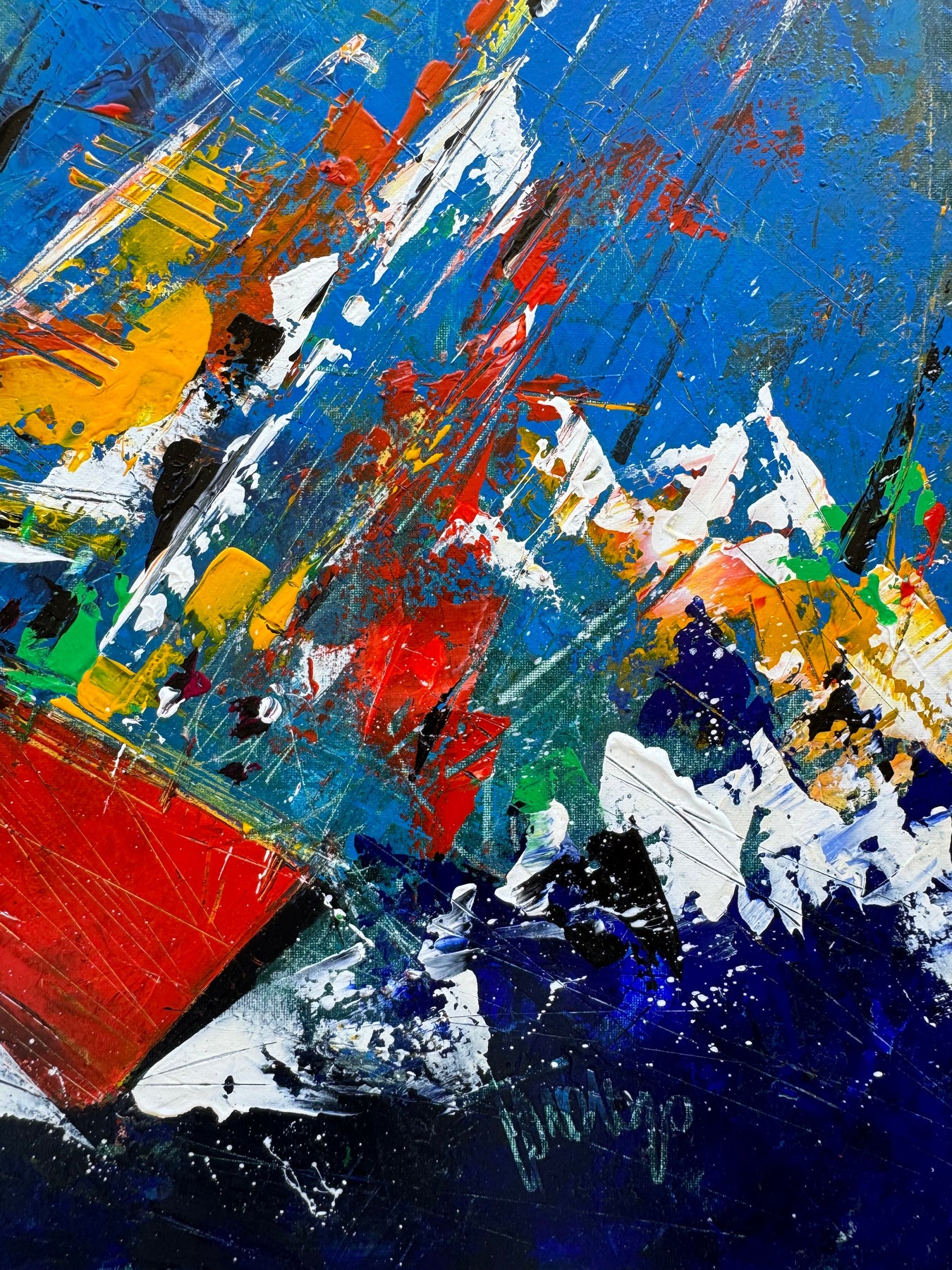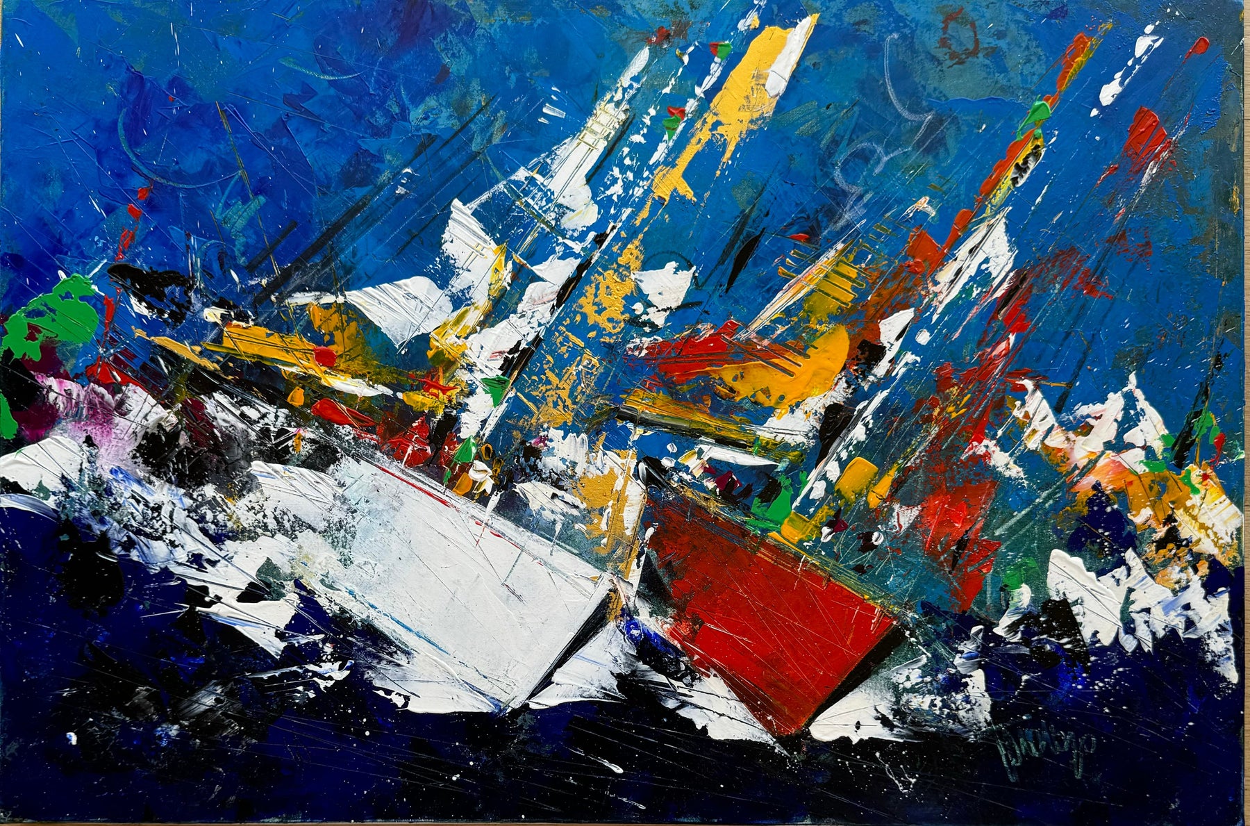 Bellissima opera Unica del Maestro Francesco Toraldo in cui è evidente l’influenza, nel suo stile, dell’Espressionismo astratto americano, in particolar modo di Pollock e dell’action painting.