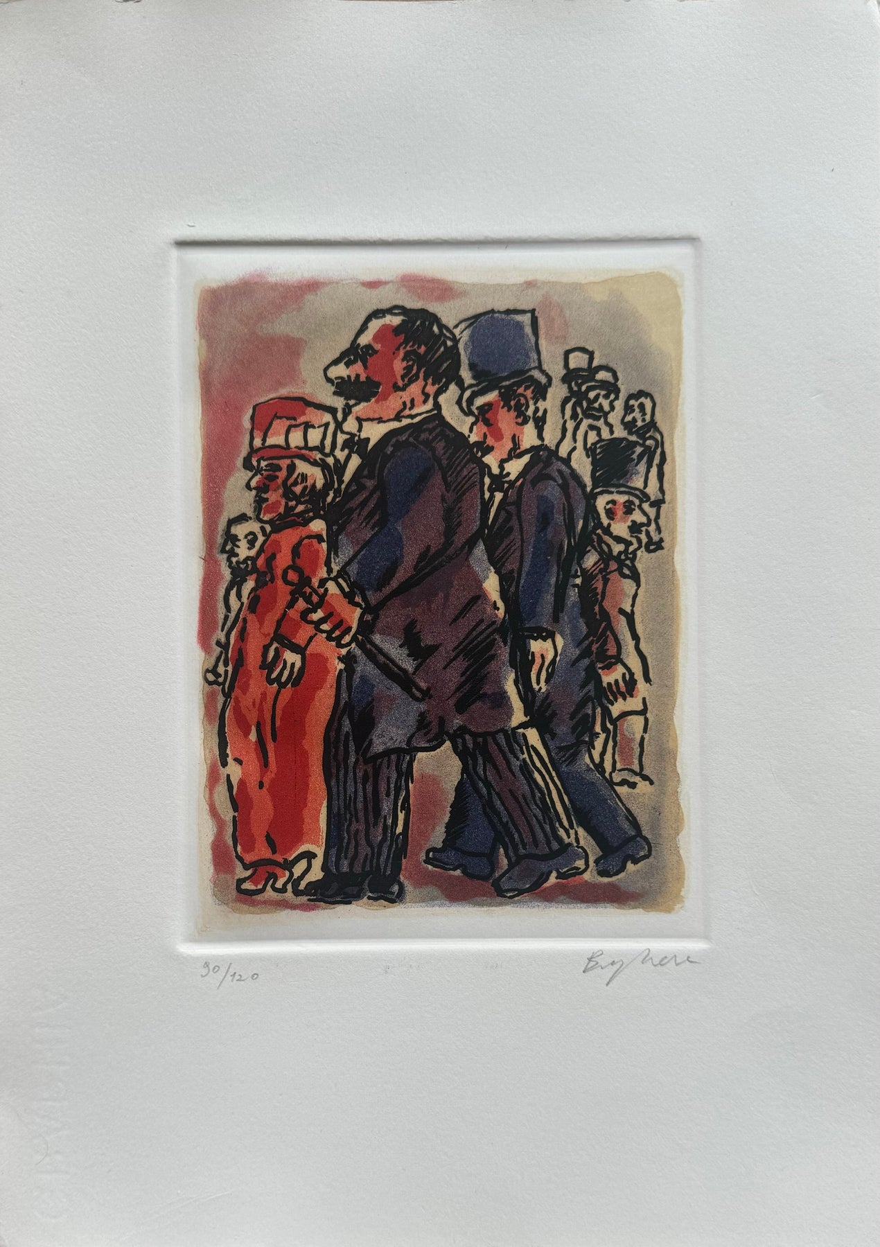 Litografia del Maestro Franz Borghese con timbro a secco e timbro della stamperia in basso a destra.