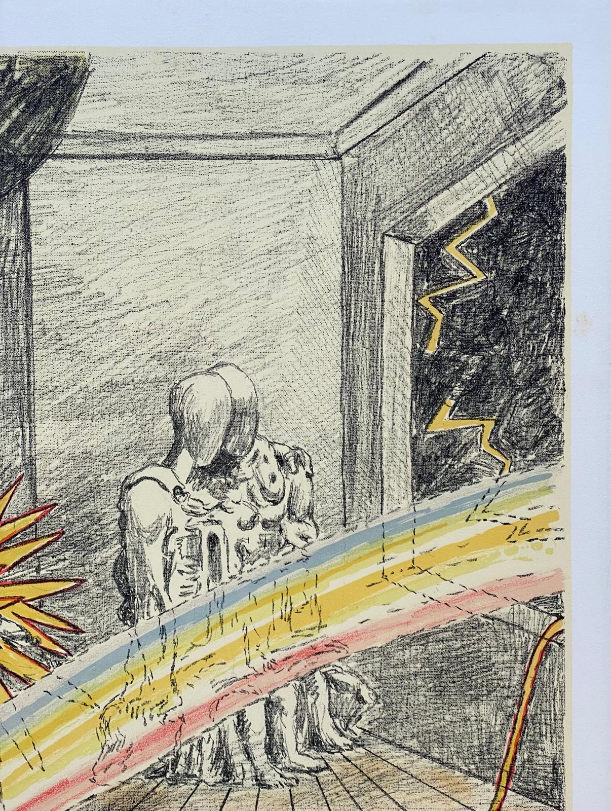 Litografia originale stampata da Alberto Caprini Stampatore, colorata a mano dall'artista (esemplare unico), contrassegnata da "visto si stampi" edizione facente parte della collezione privata dello stampatore e dell'archivio della stamperia Caprini, firmata a matita dall'artista.