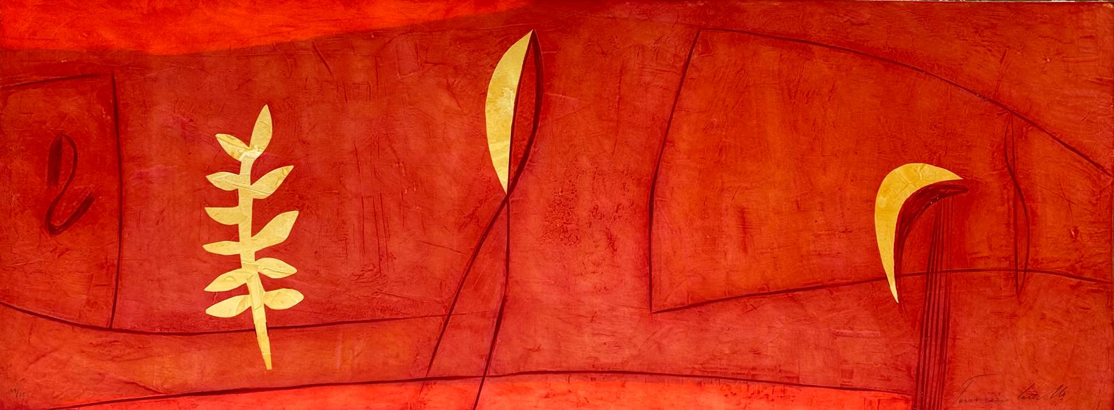 Acquatinta e serigrafia con foglia oro e collage.