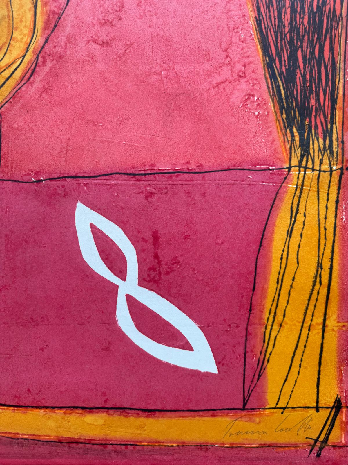 La sua pittura è inclinata a una trasposizione tridimensionale, in simbiosi con la sua scultura in bronzo. Le intense composizioni cromatiche di Cascella sono vere e proprie architetture costellate di simboli, quasi un alfabeto alchemico carico di significati universali. Pittura e scultura vengono trattate con la volontà di contaminare la vista con il tatto, la superficie liscia del colore con una stratificazione di gesti e segni, il piano ideale della pittura con vistosi inserti materici.
