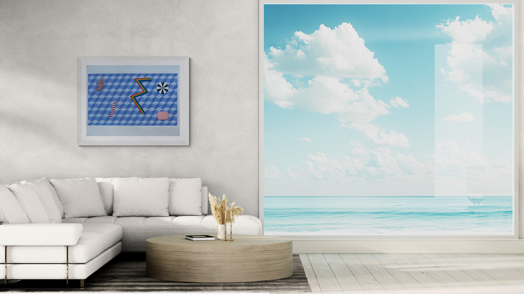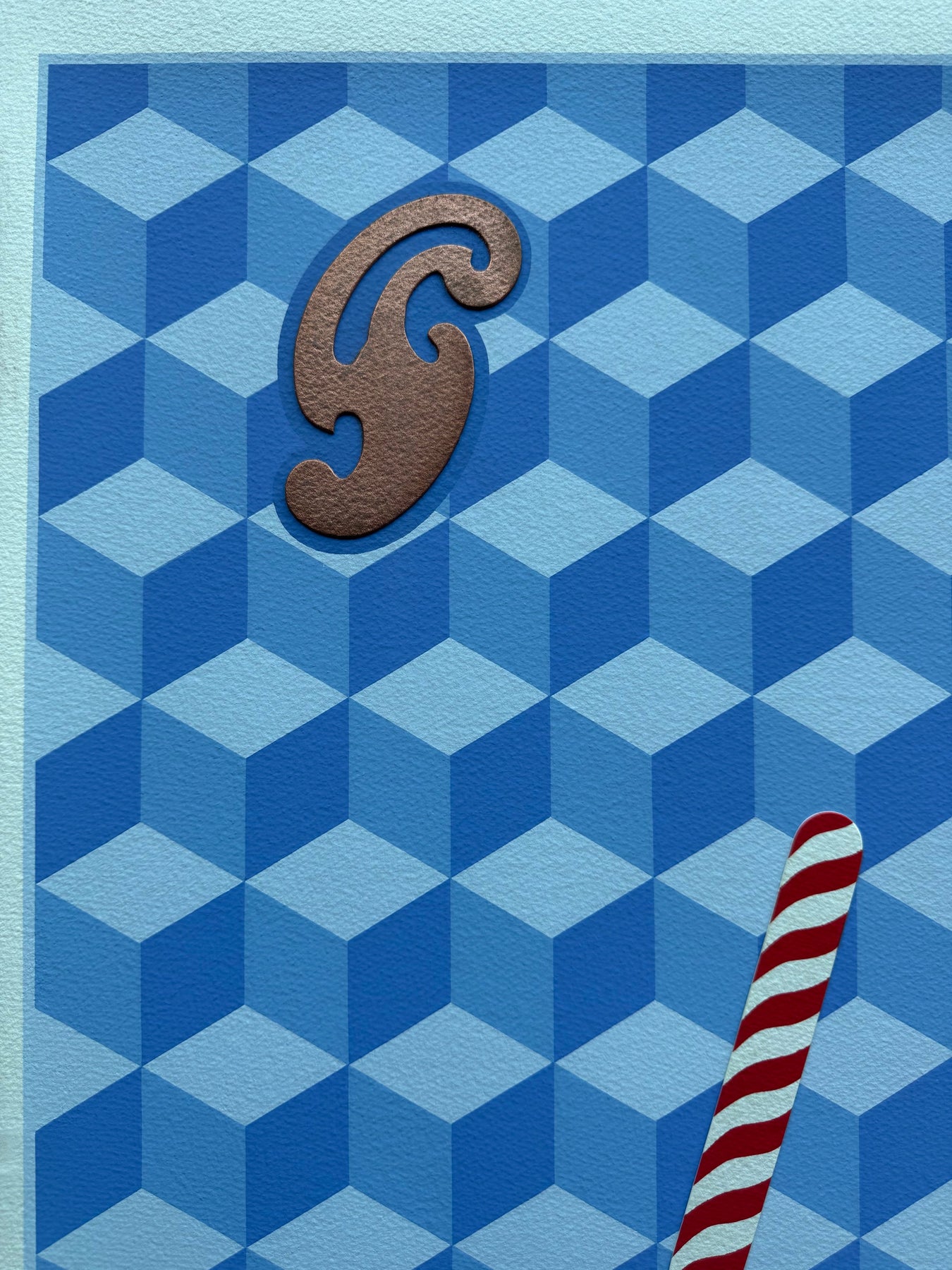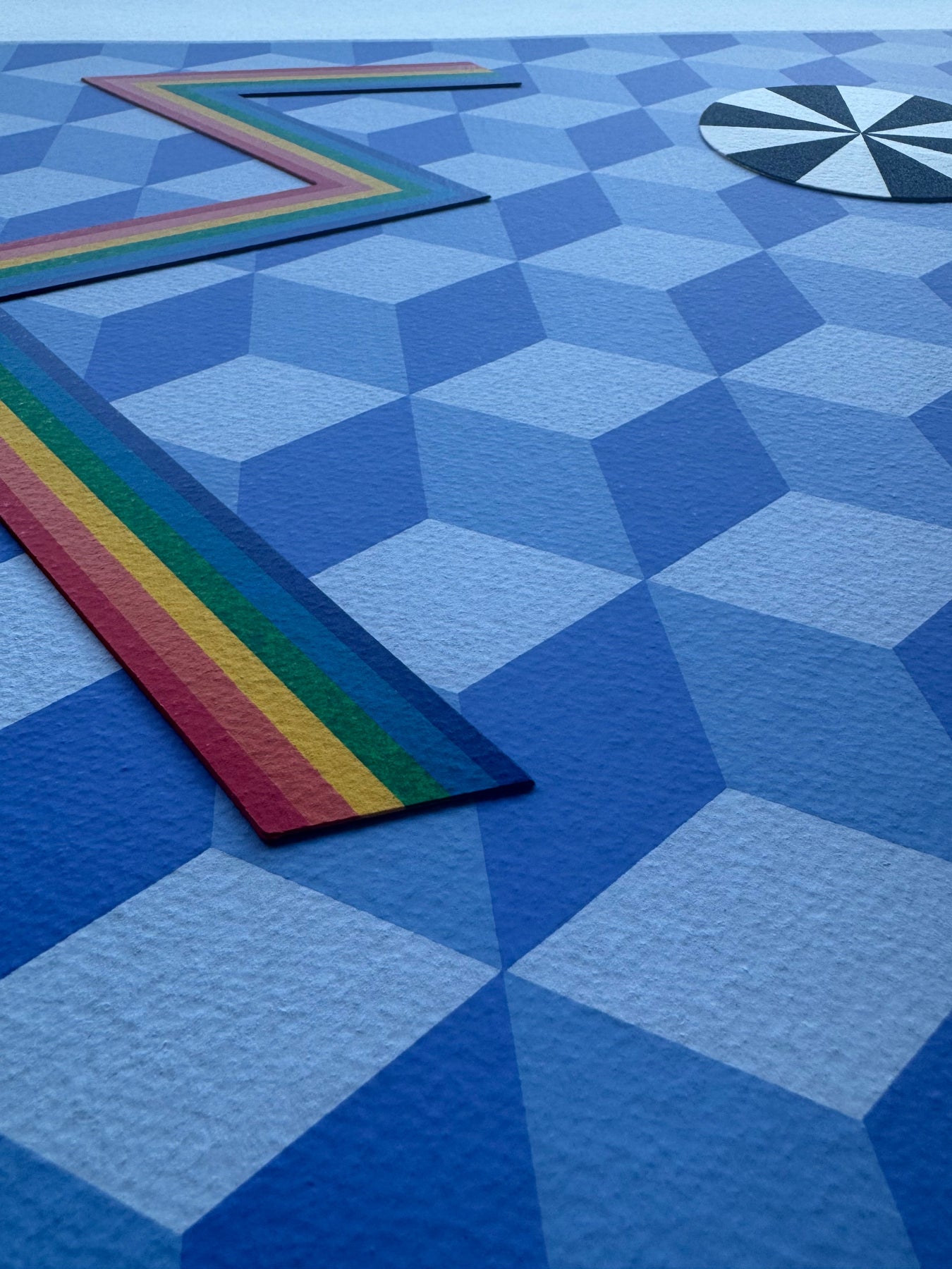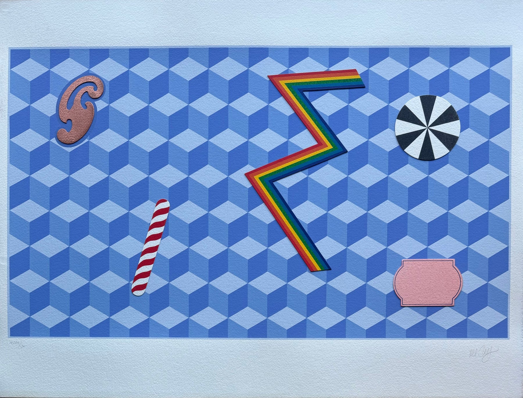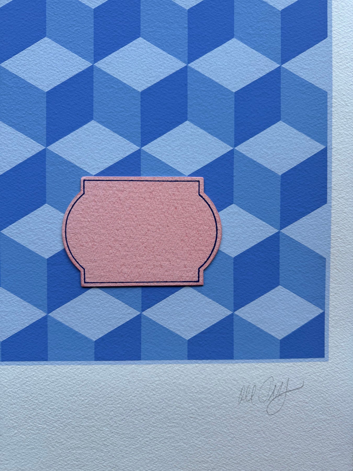 Splendida serigrafia di dimensione 100x76 cm realizzata interamente a mano su carta pregiata e inserti in collage.