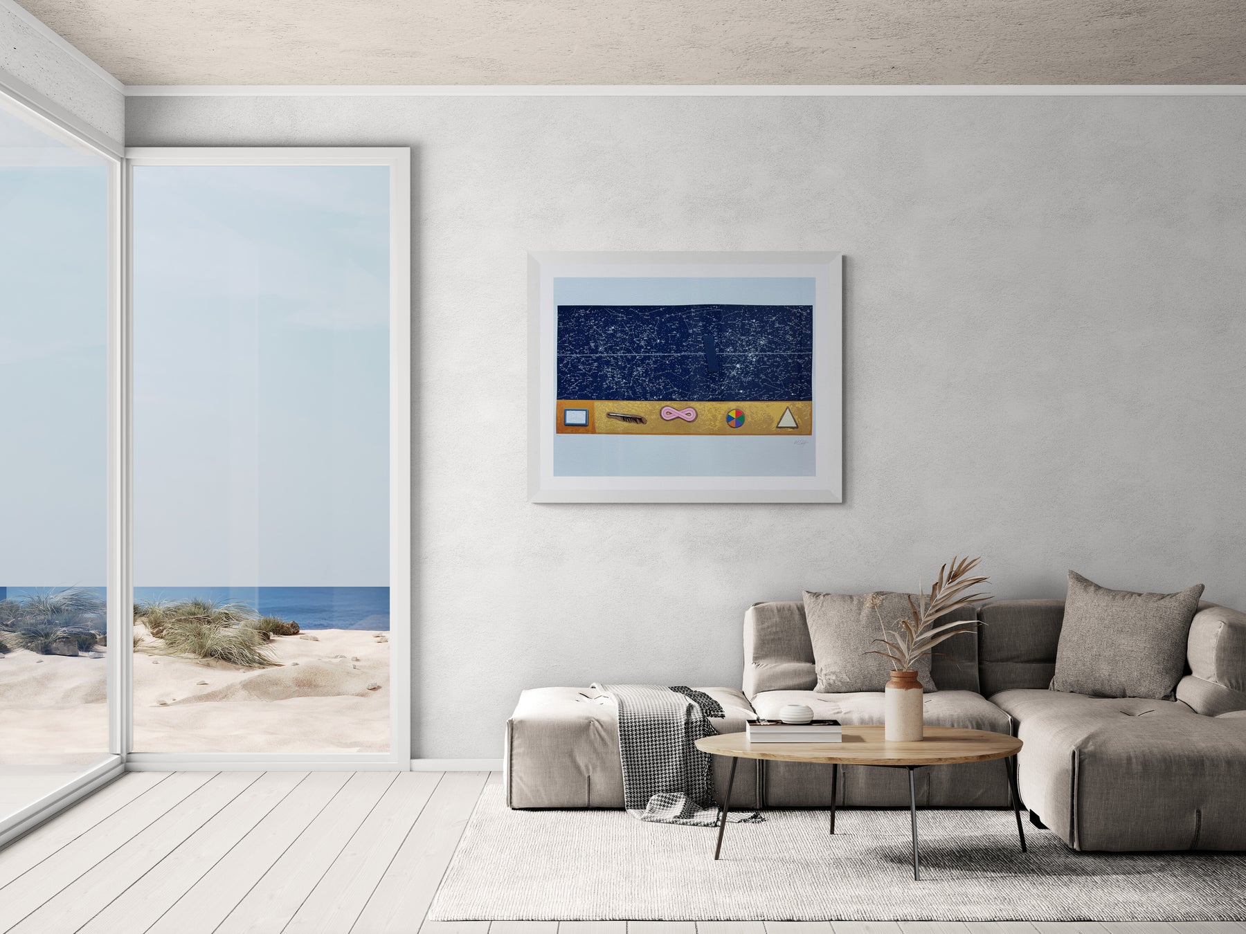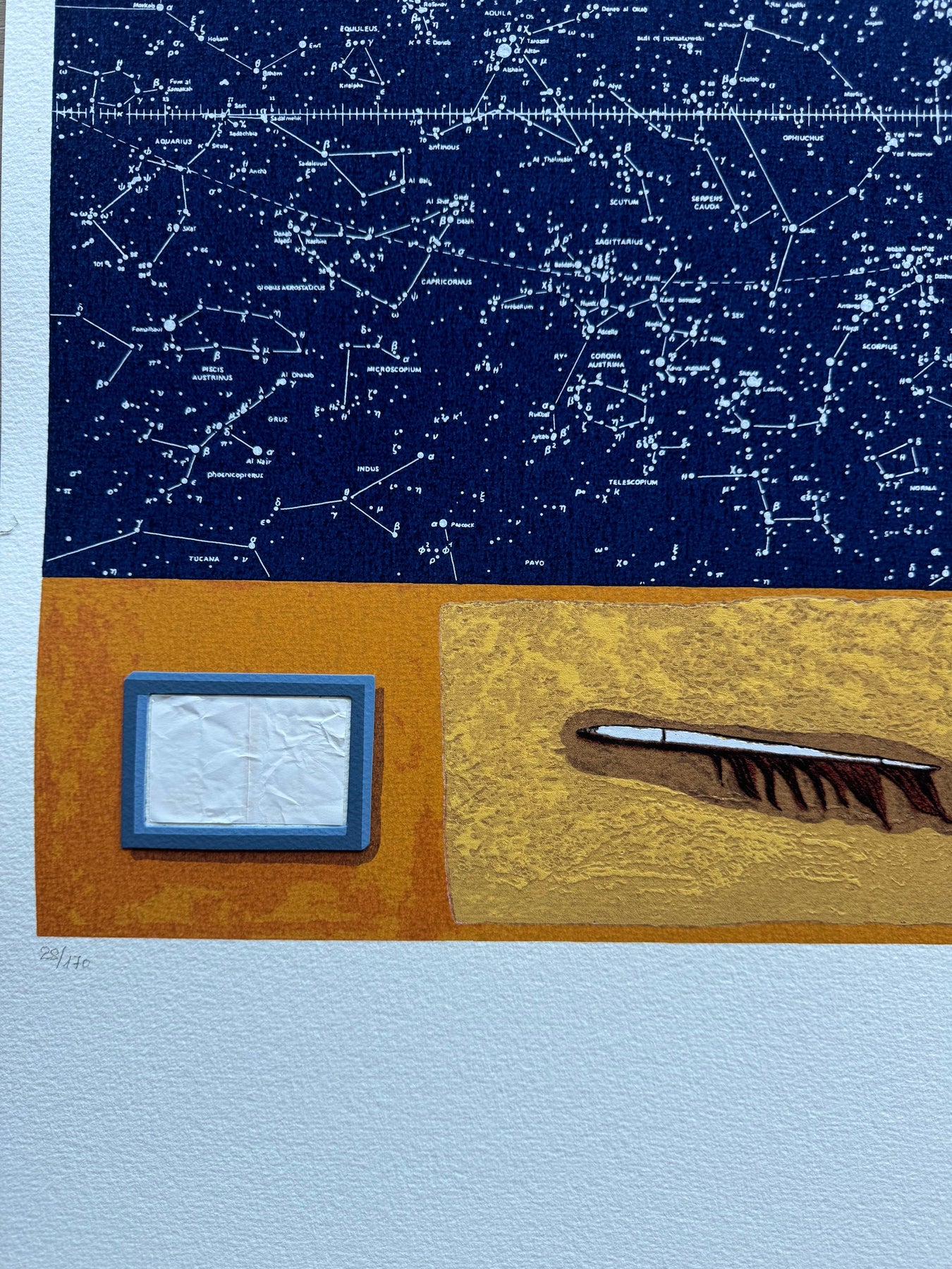 Splendida serigrafia di dimensione 100x76 cm realizzata interamente a mano su carta pregiata e inserti in collage.