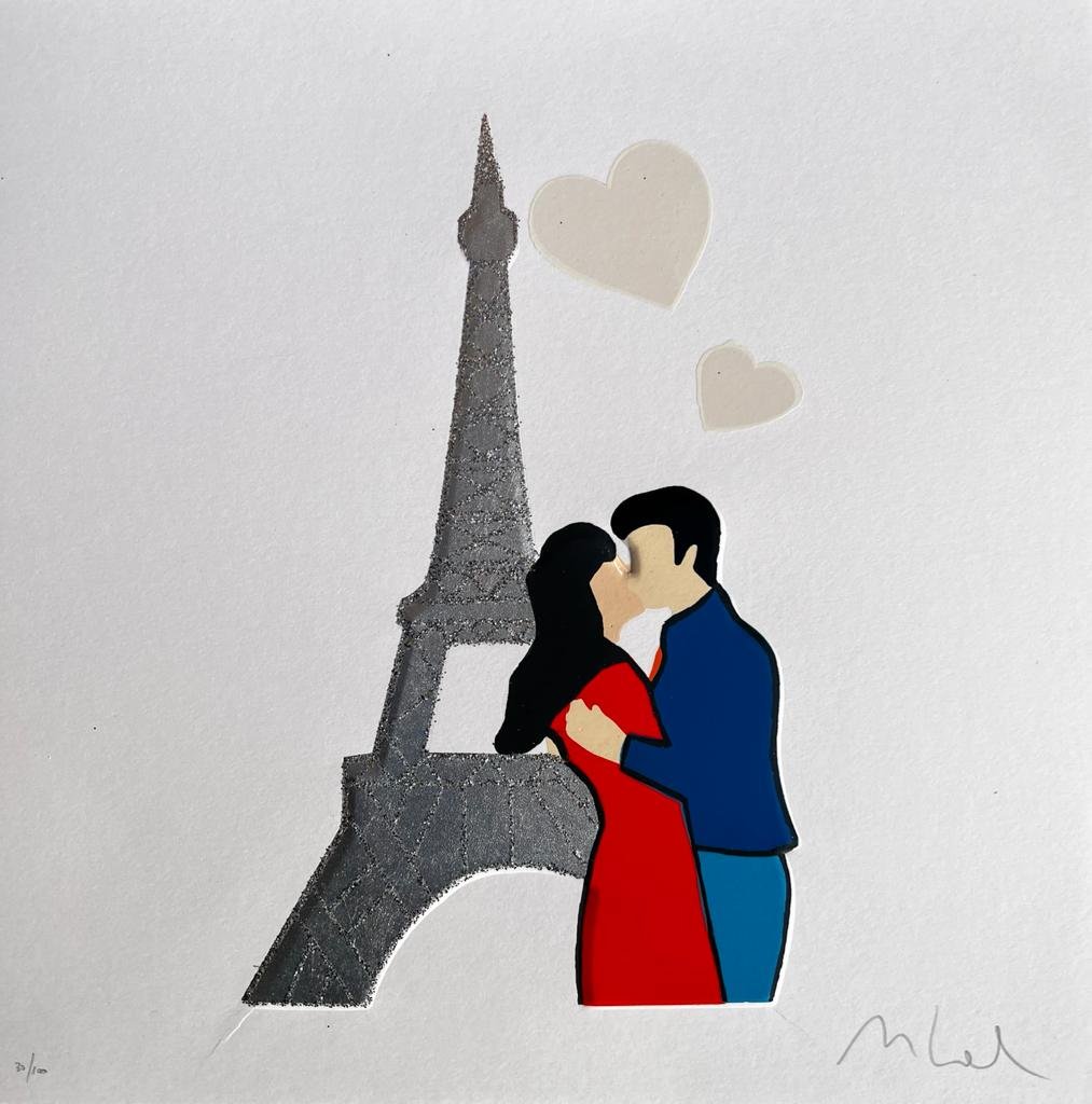 Serigrafia polimaterica a 30 passaggi di colore con interventi in floccaggi, smalti, glitter, realizzati con passaggio calcografico a secco che dà all'opera un effetto 3D.