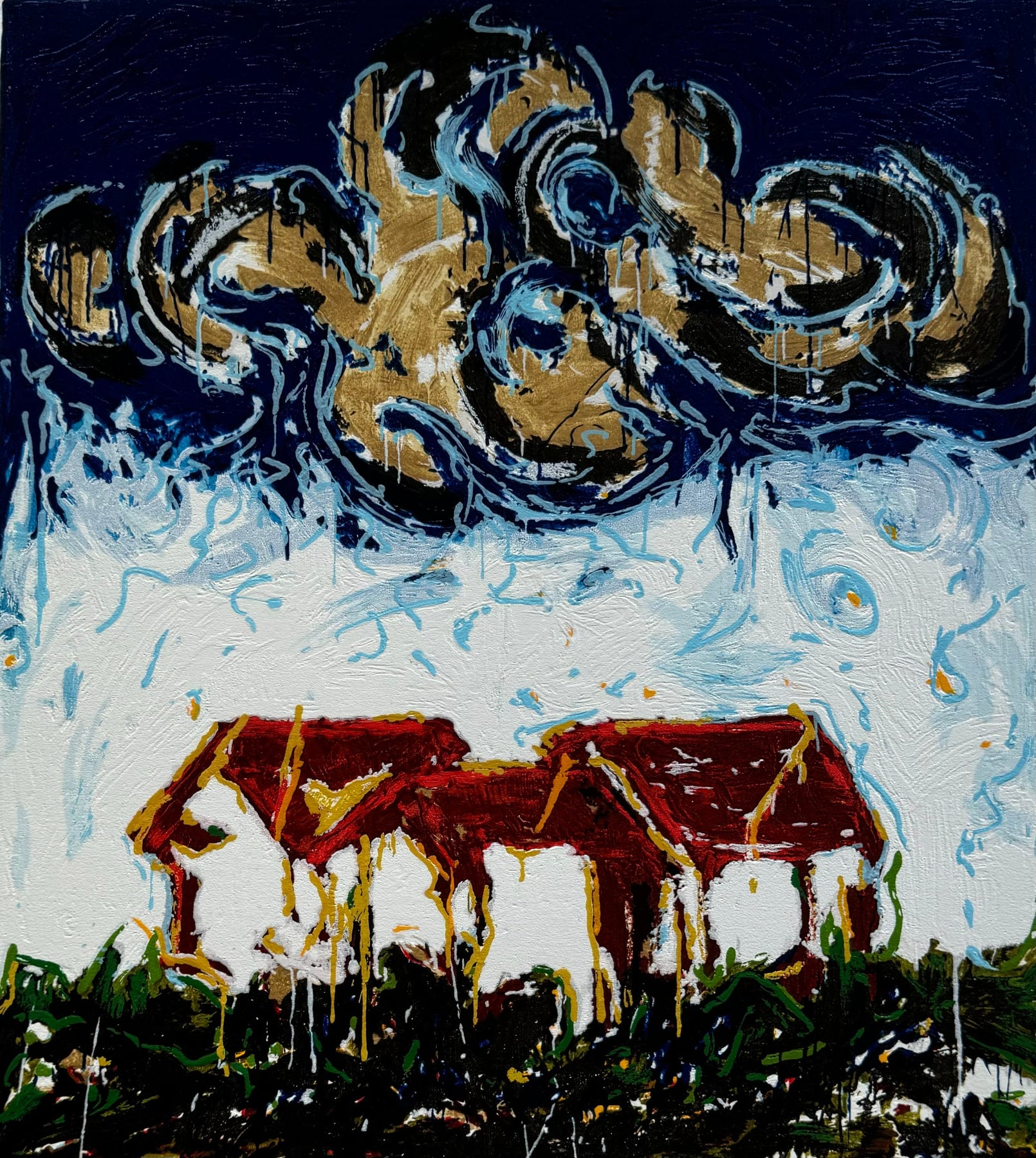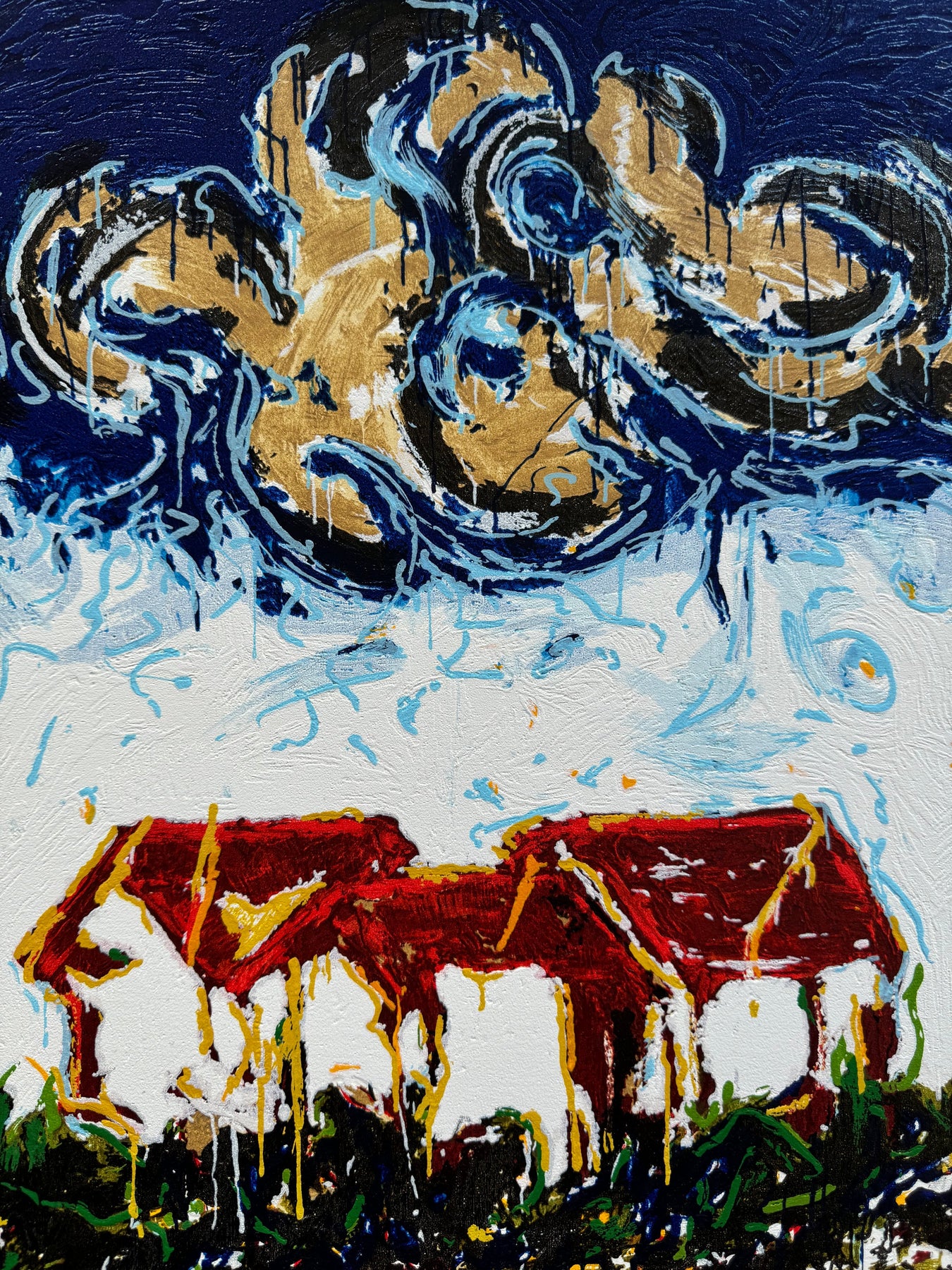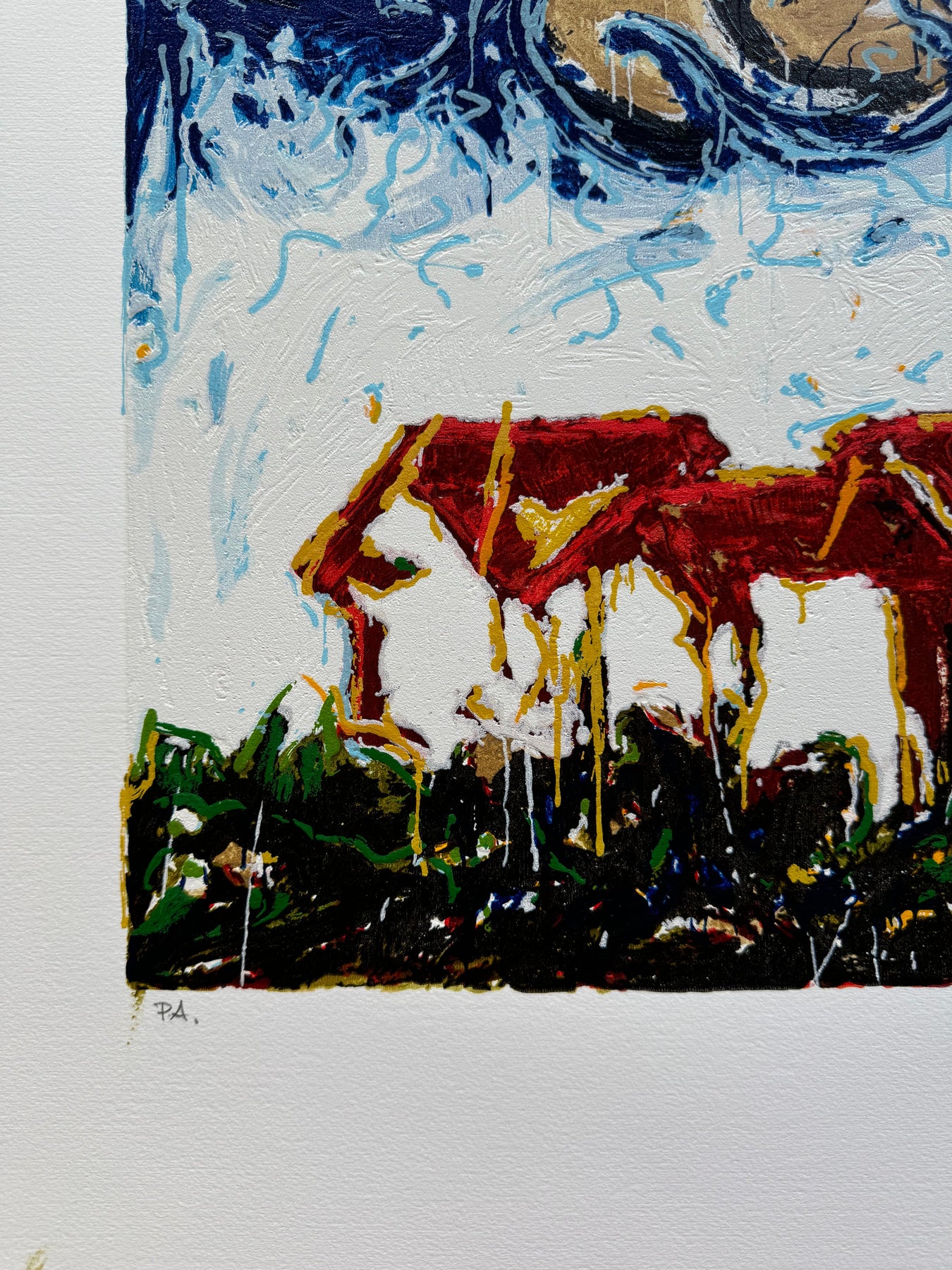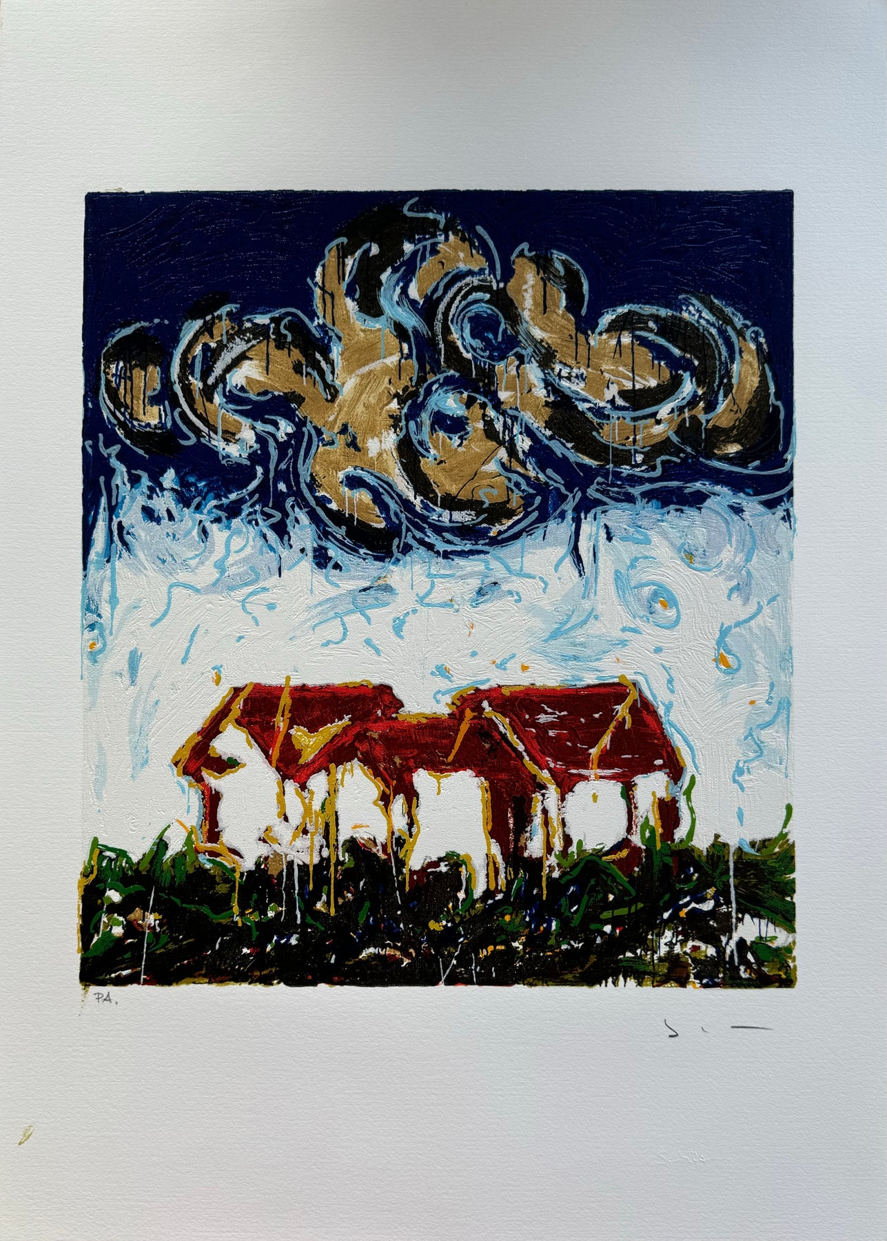 Case, 1996, serigrafia materica a smalto, 380x550 mm. Stampa a 32 colori su carta in formato 500x700 mm con timbro a secco della firma di schifano. Tiratura di 199 esemplari con numeri arabi (da 1/199 a 199/199), C con numeri romani (da I/C a C/C), P.A. 100 e 100 hors commerce (da H.C. 1/100 a H.C 100/100)