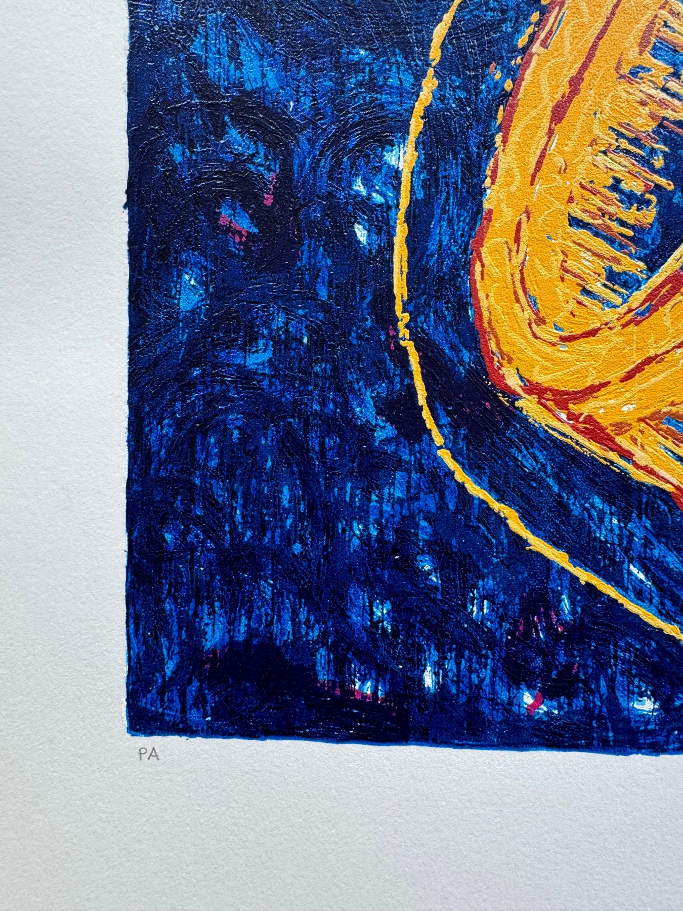 Satellite, 1996, serigrafia materica a smalto, 335x345 mm. Stampa a 28 colori su carta in formato 500x500 mm con timbro a secco della firma di schifano. Tiratura di 199 esemplari con numeri arabi (da 1/199 a 199/199), C con numeri romani (da I/C a C/C), P.A. 100 e 100 hors commerce (da H.C. 1/100 a H.C 100/100)