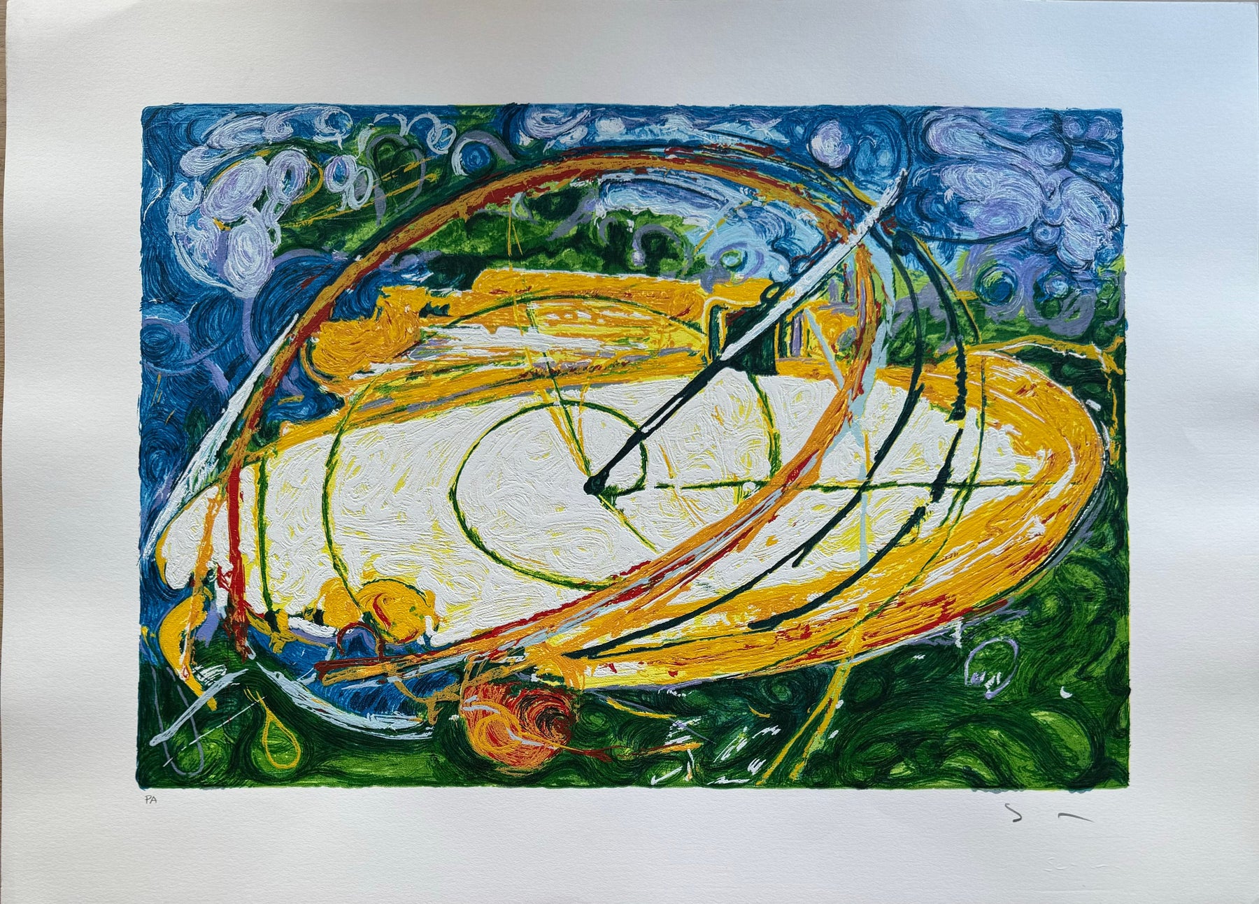 Viaggio verso l'iinfinito, 1996, serigrafia materica a smalto, 380x550 mm. Stampa a 32 colori su carta in formato 500x700 mm con timbro a secco della firma di schifano. Tiratura di 199 esemplari con numeri arabi (da 1/199 a 199/199), C con numeri romani (da I/C a C/C), P.A. 100 e 100 hors commerce (da H.C. 1/100 a H.C 100/100)