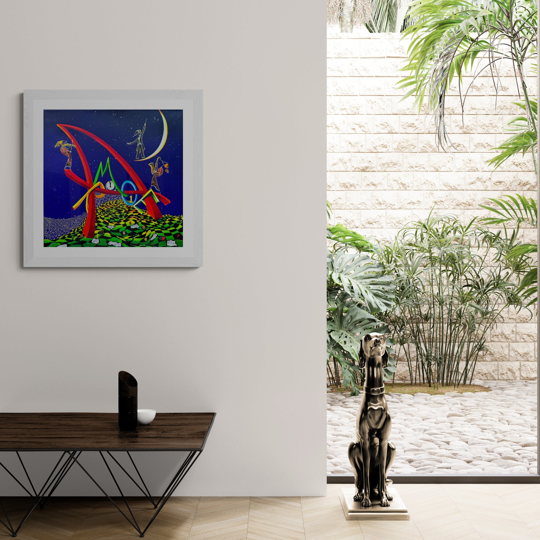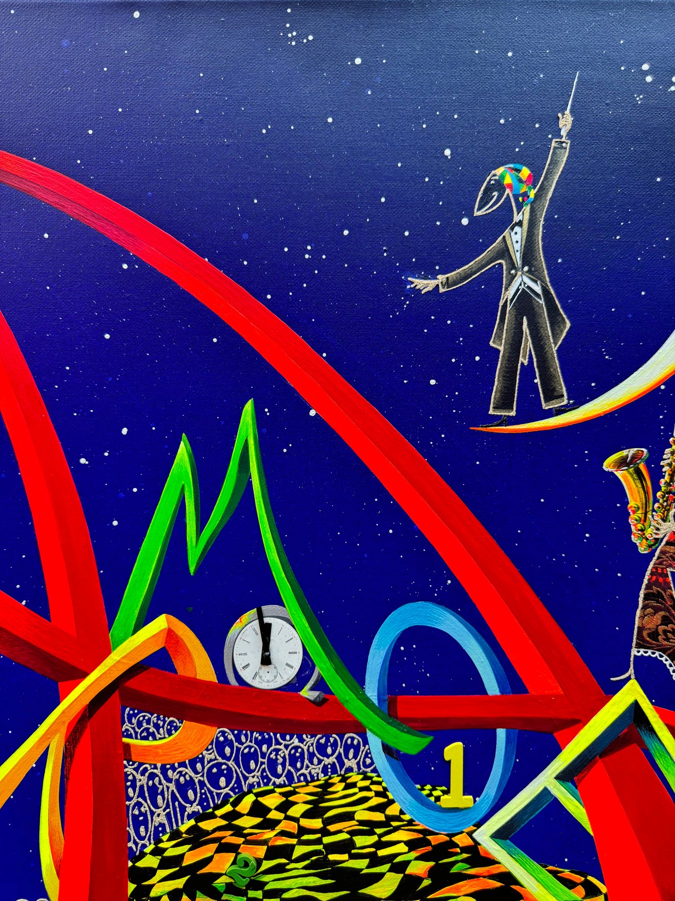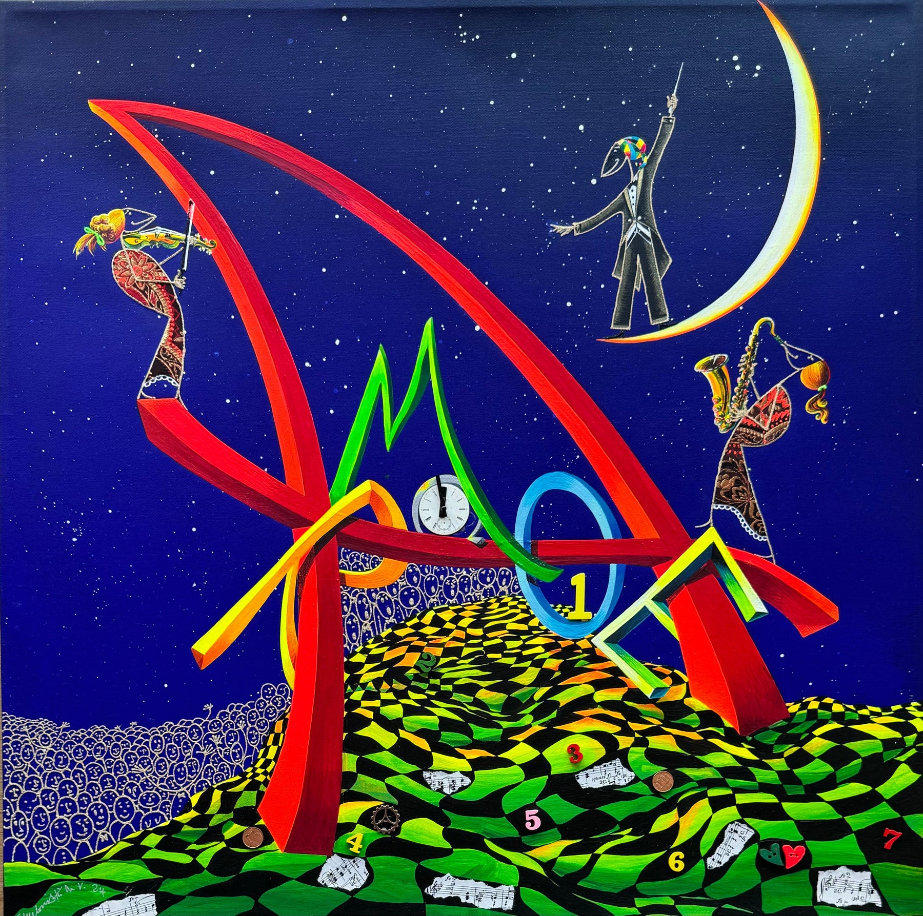 Opera unica su tela del Maestro Meloniski dai colori vivaci e brillanti, dagli scenari surreali e onirici che contraddistinguono la pittura dell'Artista.