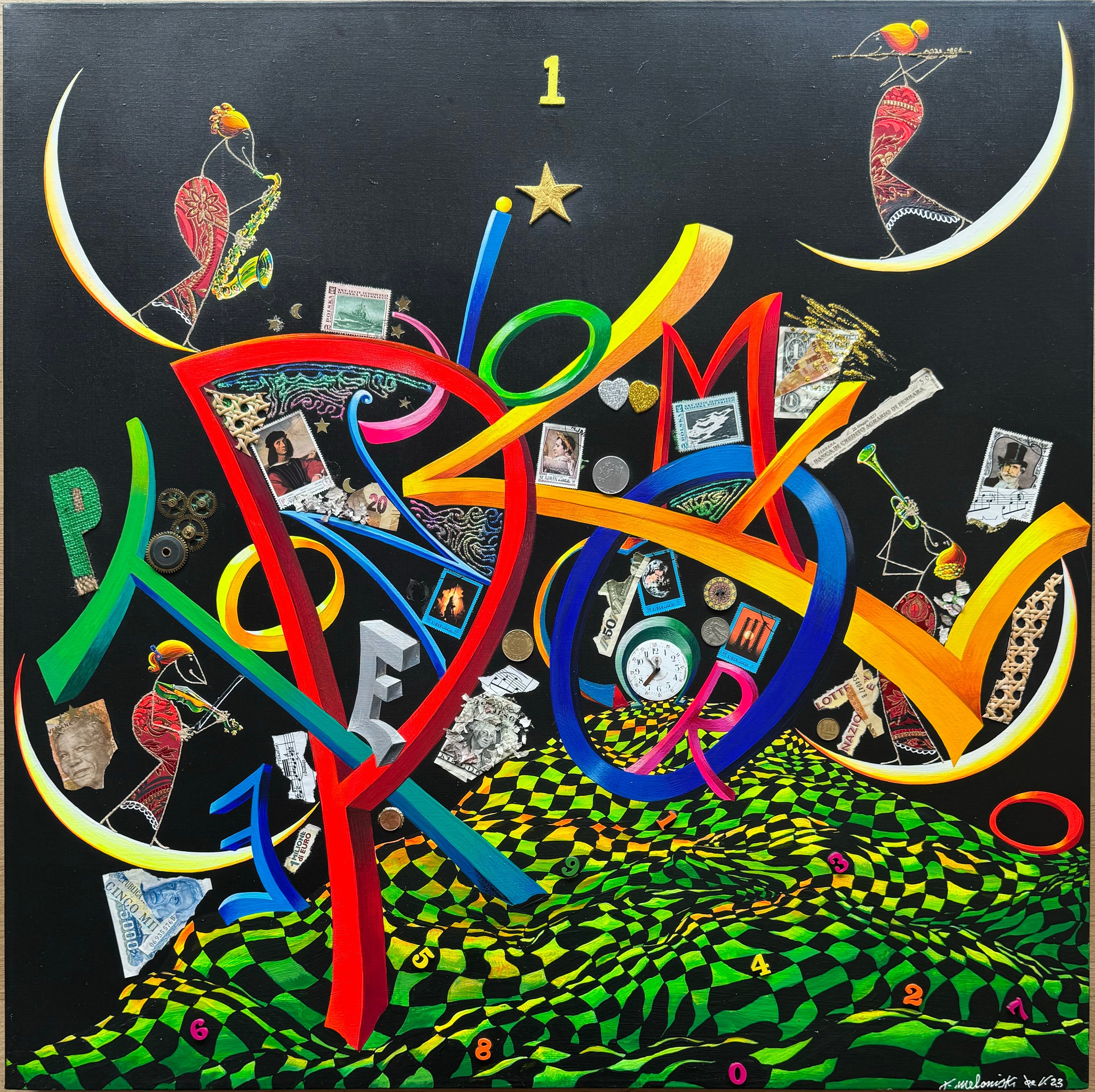Opera unica su tela del Maestro Meloniski dai colori vivaci e brillanti, dagli scenari surreali e onirici che contraddistinguono la pittura dell'Artista.