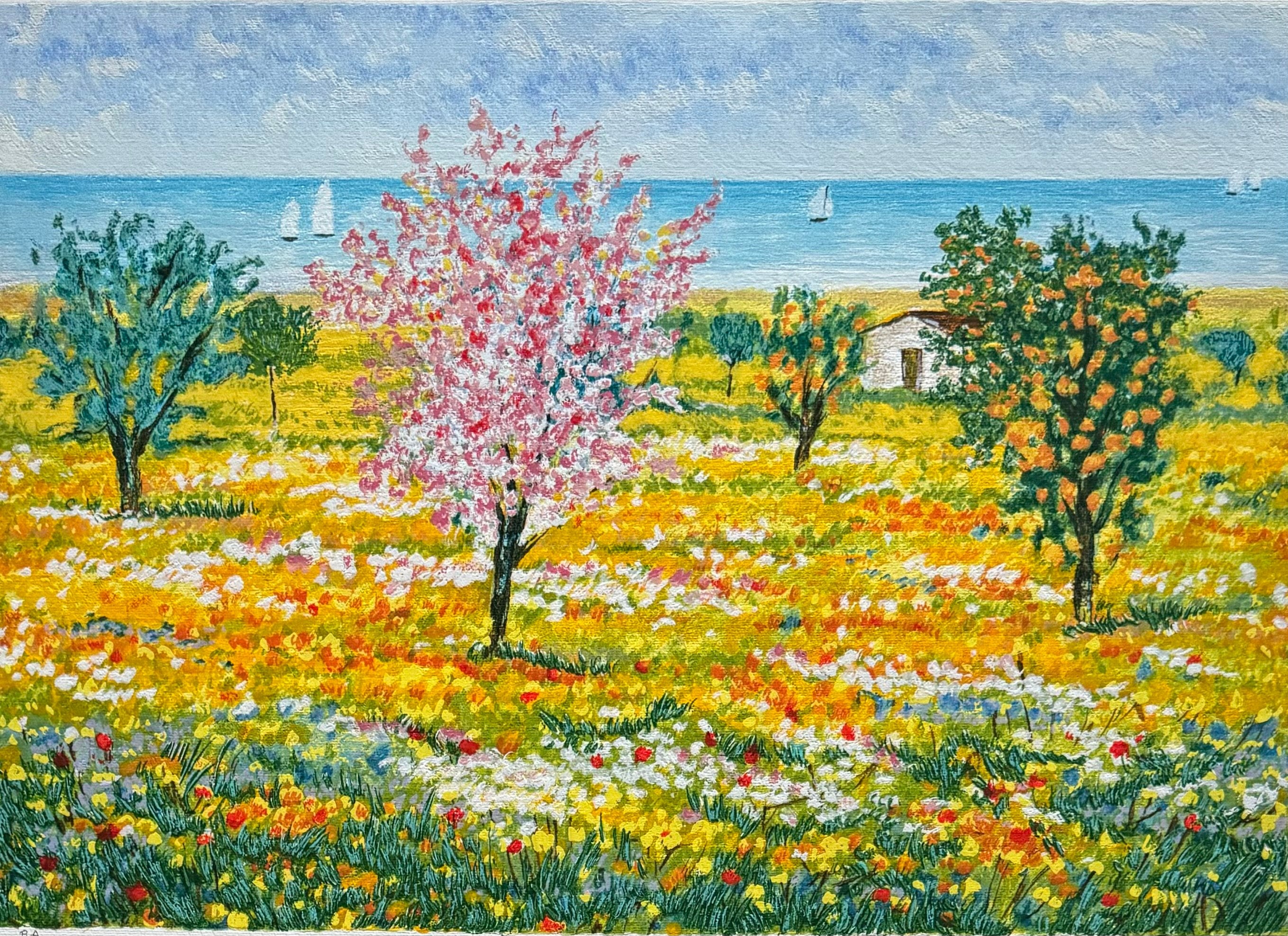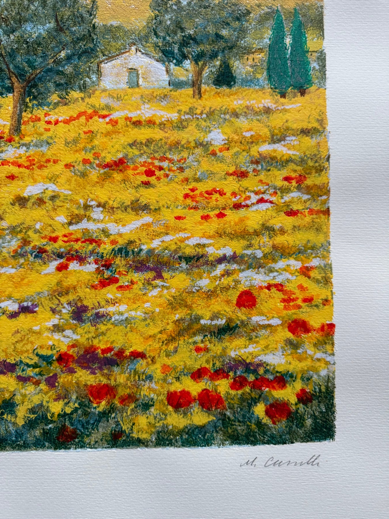 Litografia di fine anni '80 realizzata su carta della Cartiera Magnani di Pescia, con timbro a secco della firma di Michele Cascella e la filigrana "Torcular".
