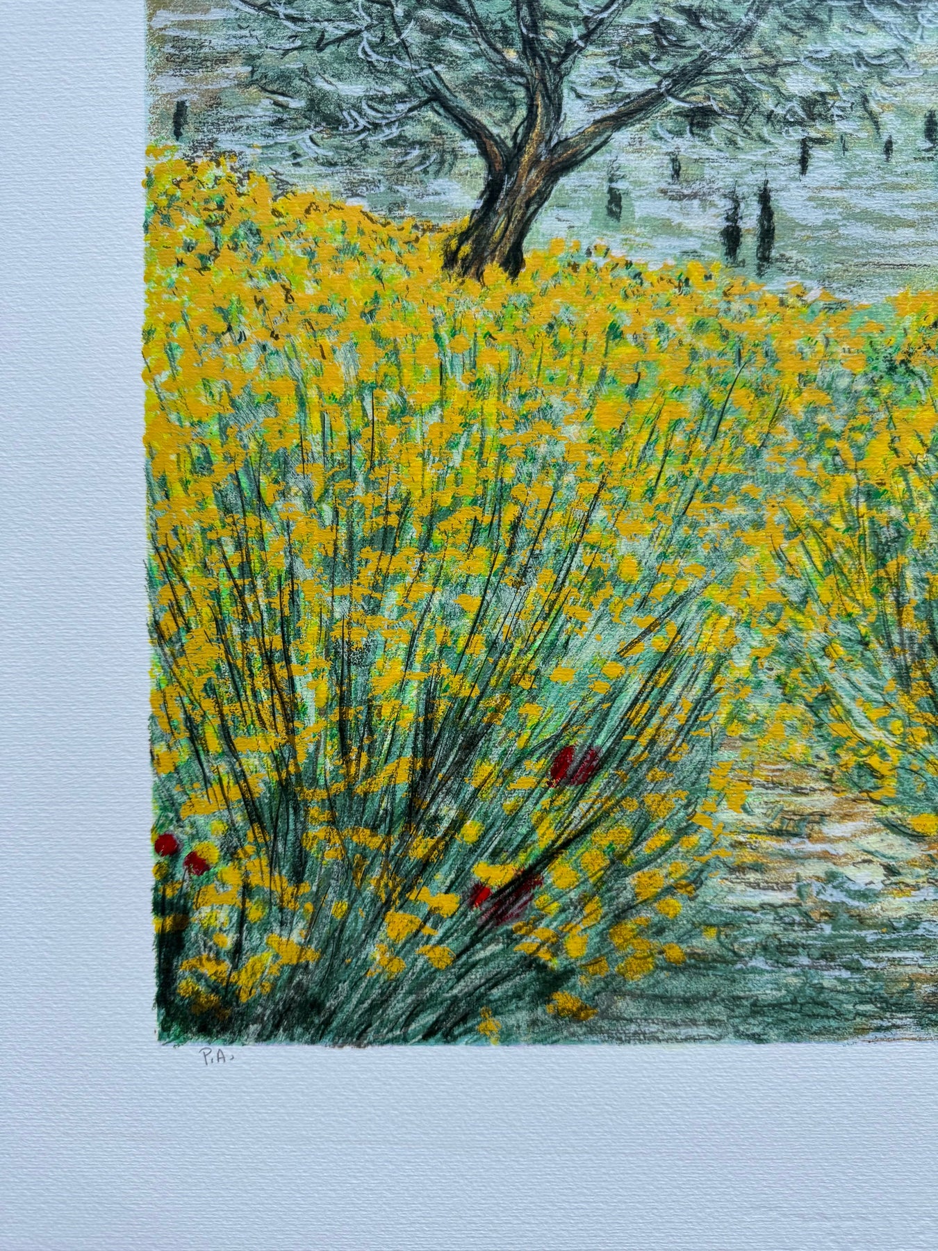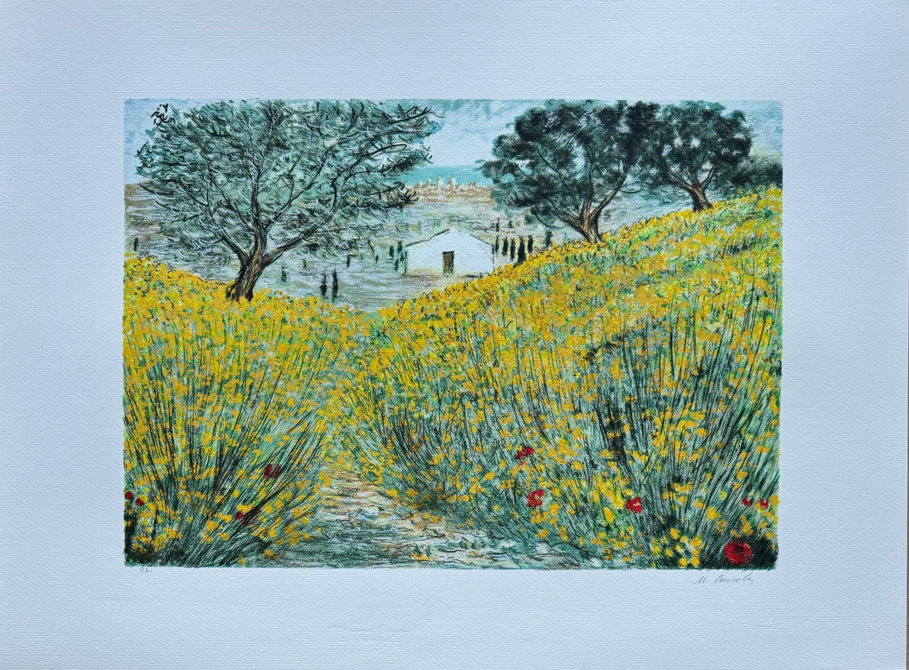 Litografia di fine anni '80 realizzata su carta della Cartiera Magnani di Pescia, con timbro a secco della firma di Michele Cascella e la filigrana "Torcular".