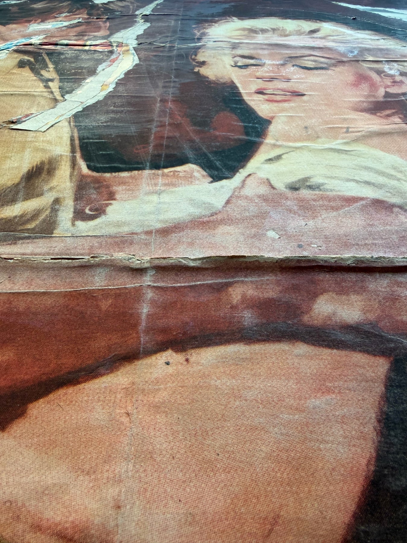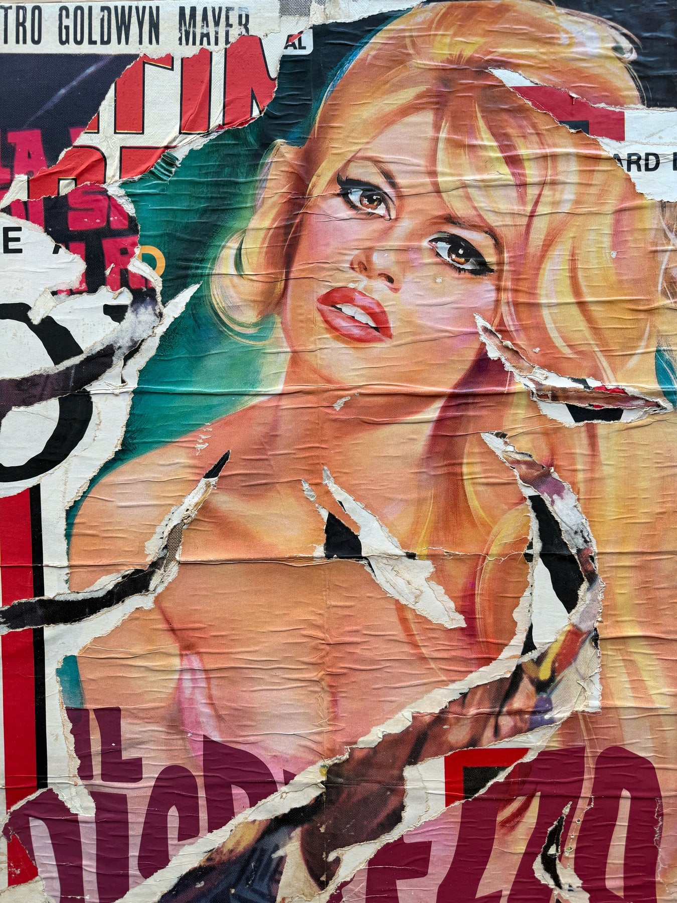 In questa opera, un volto iconico emerge tra strappi e sovrapposizioni di colori vividi e texture scomposte. È come se ogni strappo raccontasse una storia propria, aggiungendo profondità e personalità all'immagine. L'intero lavoro evoca una sensazione di nostalgia, mentre i pezzi volutamente imperfetti invitano l'osservatore a riflettere sul trascorrere del tempo e sull'inevitabile trasformazione della bellezza.