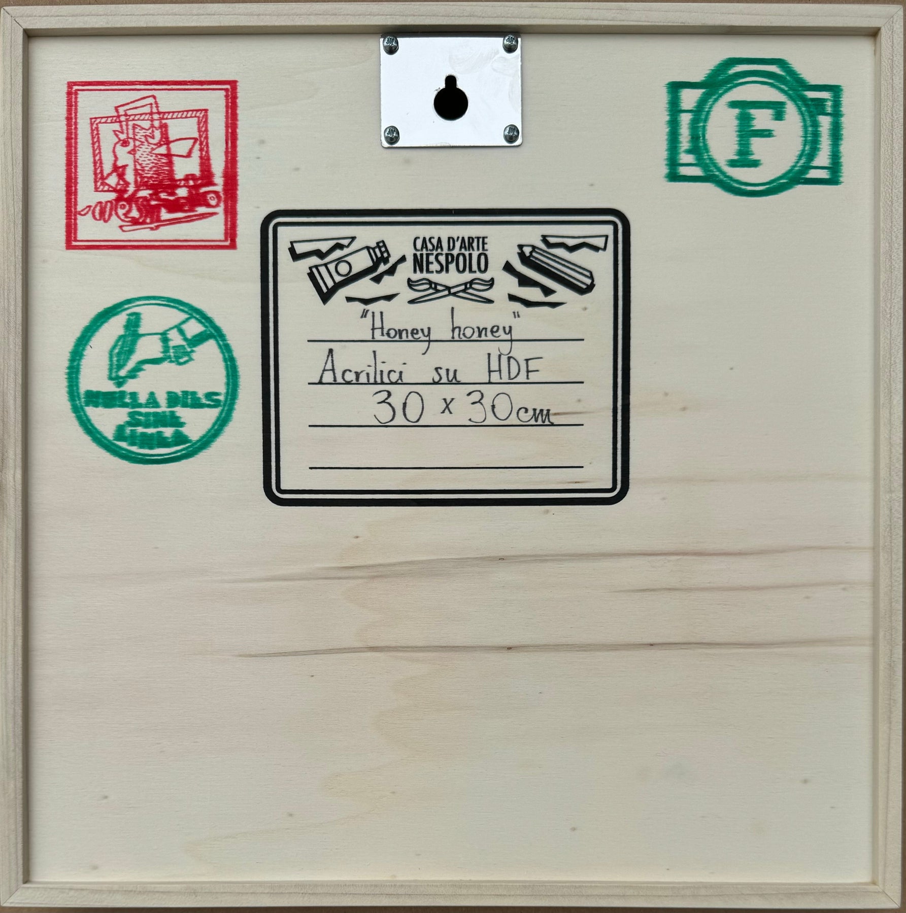 Opera unica di grande qualità del maestro Ugo Nespolo, acrilici su HDF, con autentica firmata di pugno dall’artista.