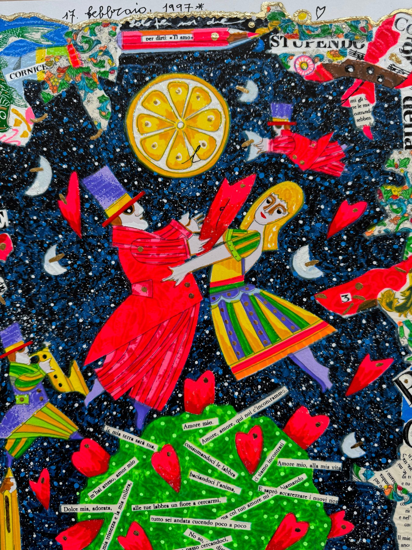 Serigrafia polimaterica del Maestro Francesco Musante con foglia oro e glitter. La tecnica utilizzata restituisce alla vista e al tatto lo spessore del colore e delle pennellate.
