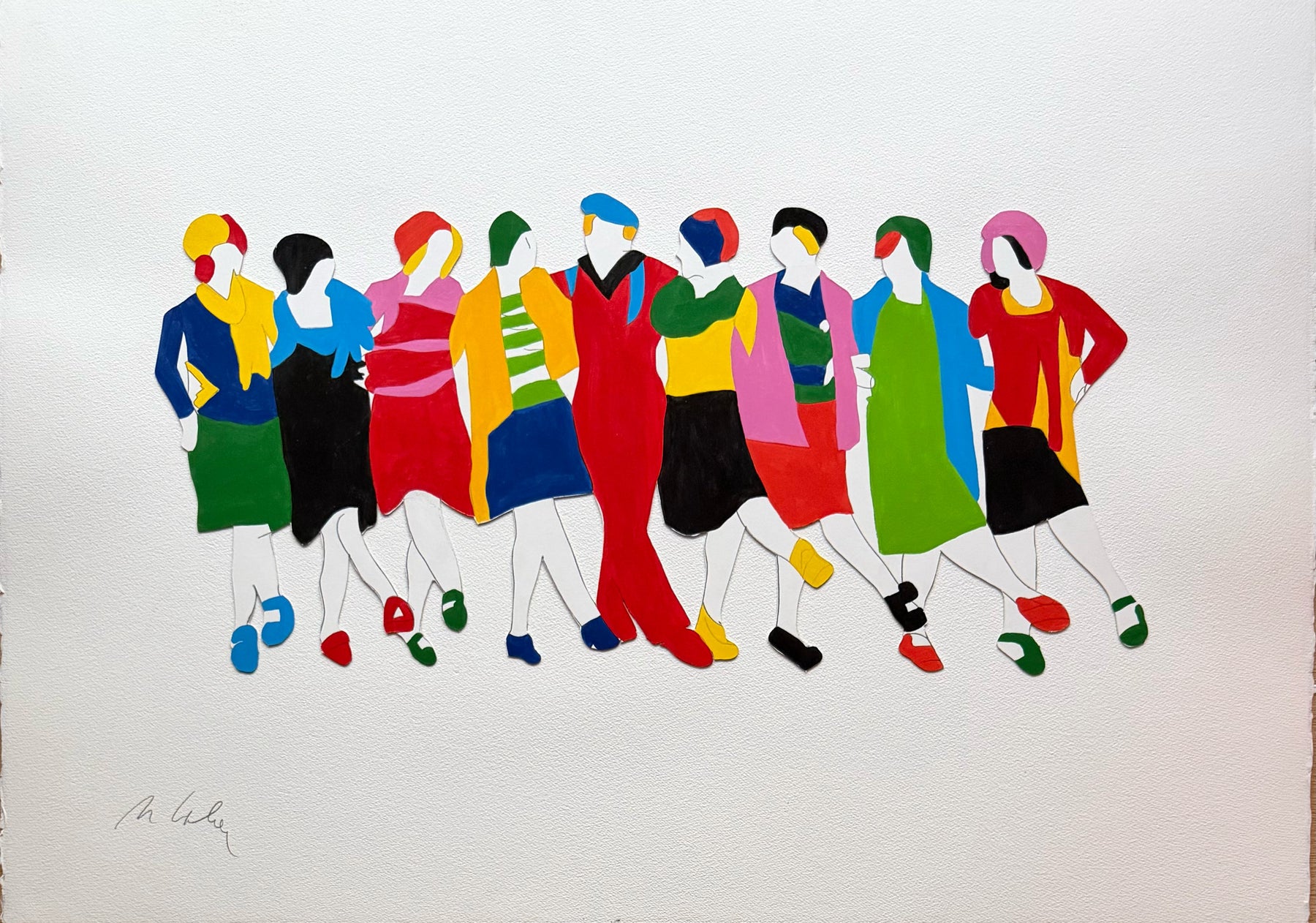 Ciascun personaggio è un tassello di un mosaico che si anima nella nostra immaginazione, evocando emozioni di convivialità e festa. La scelta cromatica è audace e accattivante, capace di trasmettere energia e vitalità, rendendo l'opera un punto focale perfetto per qualsiasi spazio desideri un tocco di positività e colore.