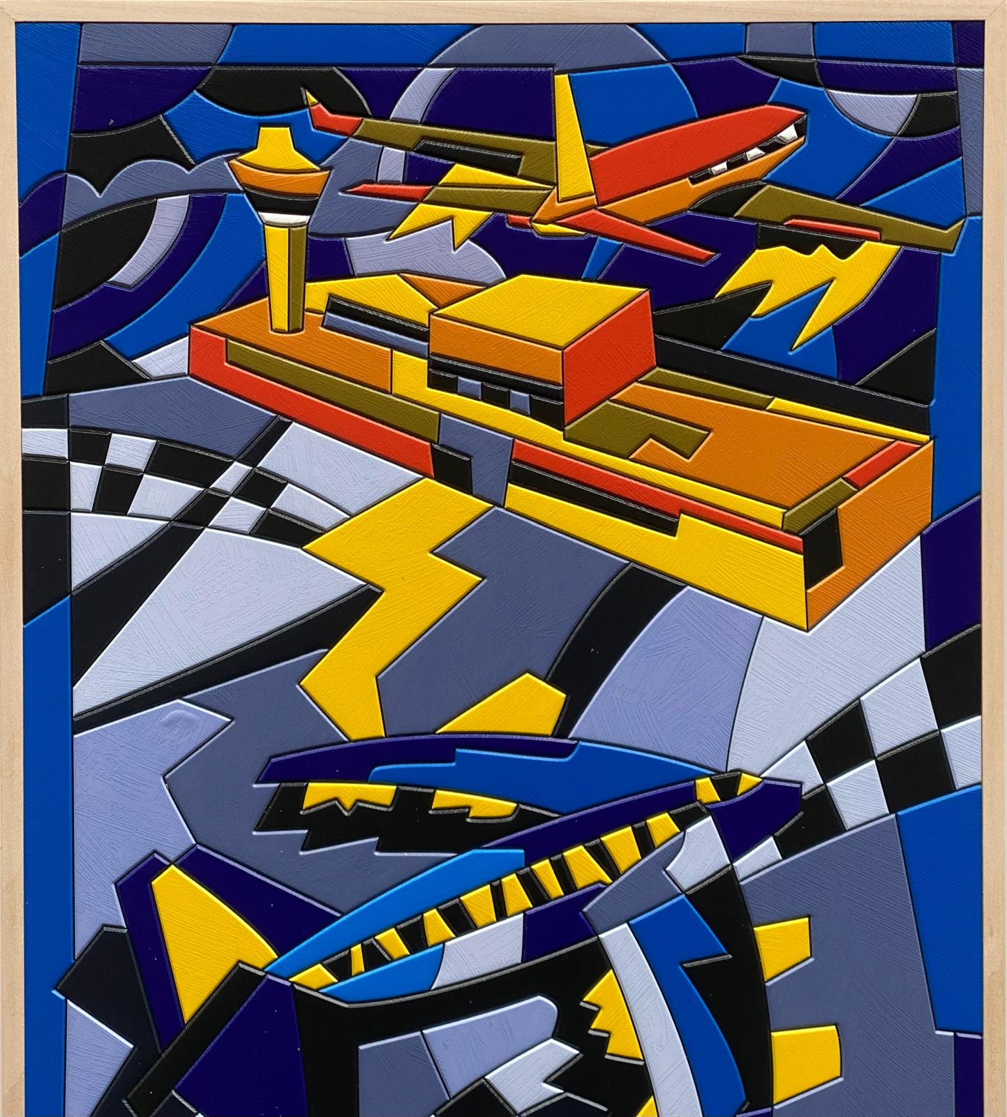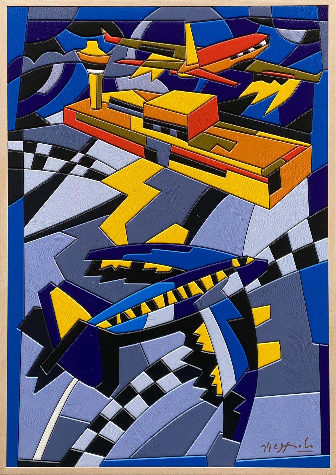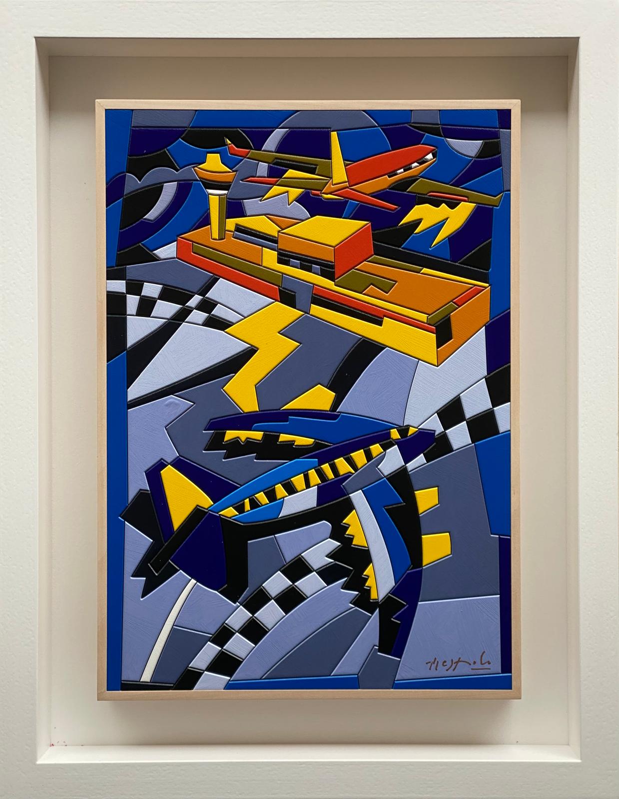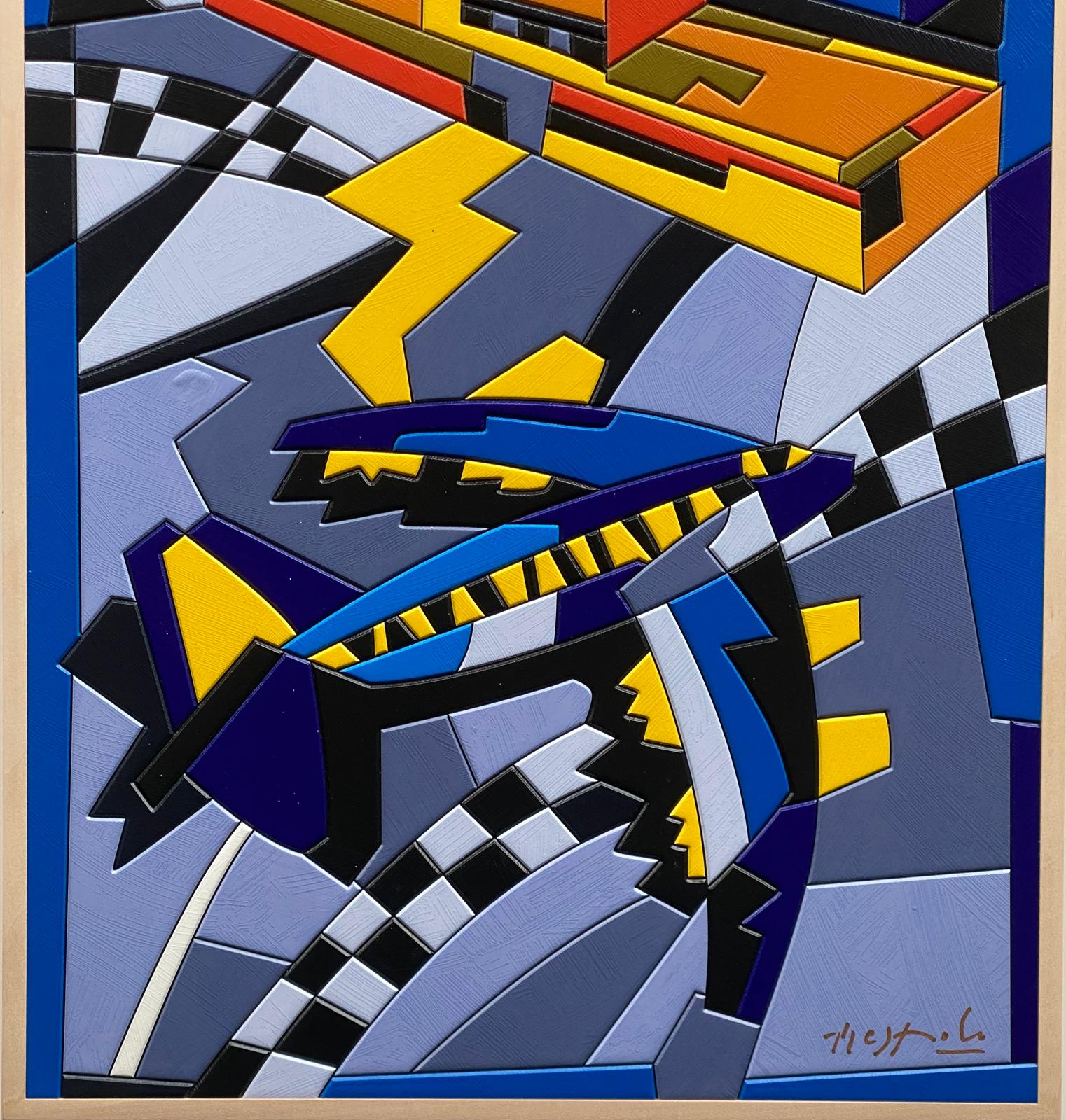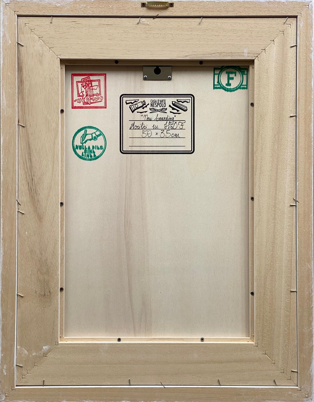 Opera unica di grande qualità del maestro Ugo Nespolo, acrilici su HDF, con autentica firmata di pugno dall’artista.
