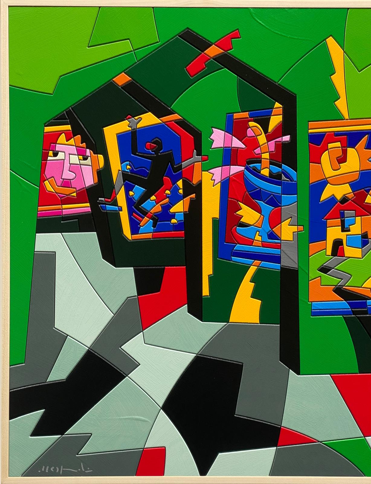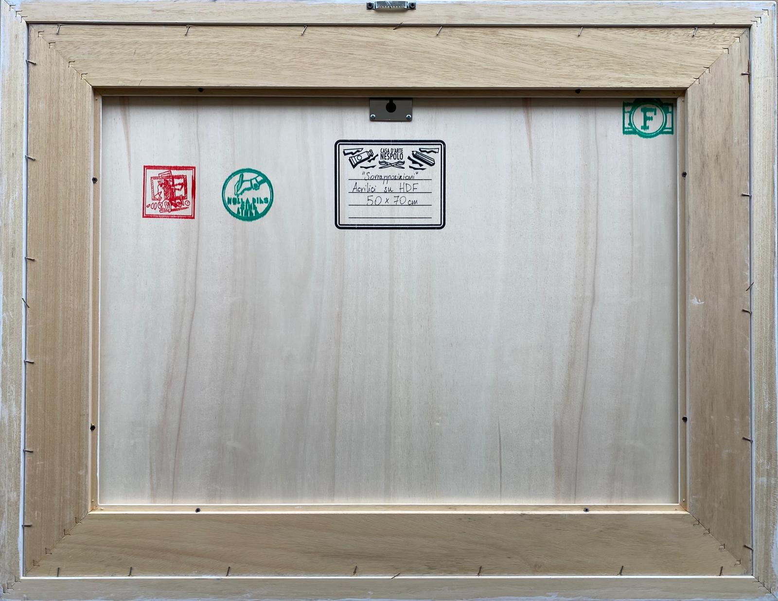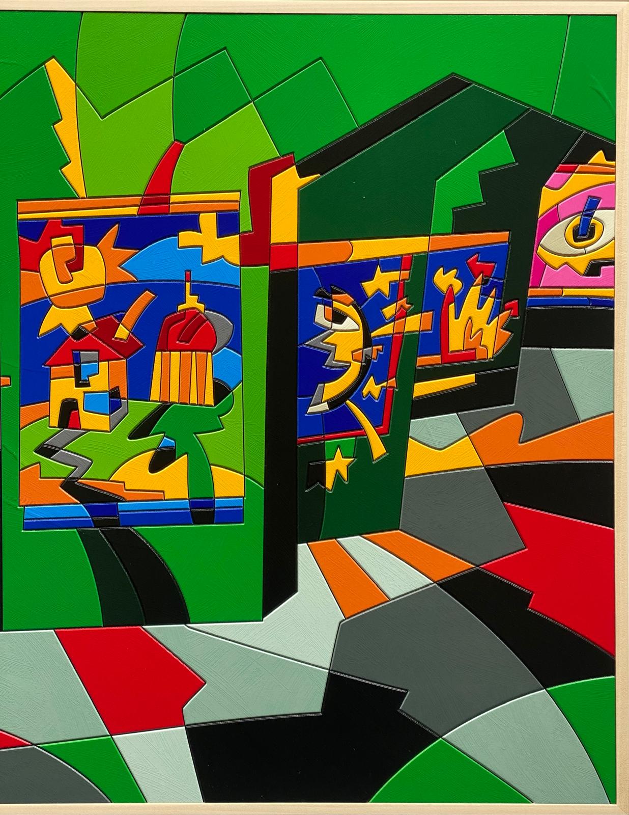 Opera unica di grande qualità del maestro Ugo Nespolo, acrilico su legno, con autentica firmata di pugno dall’artista.