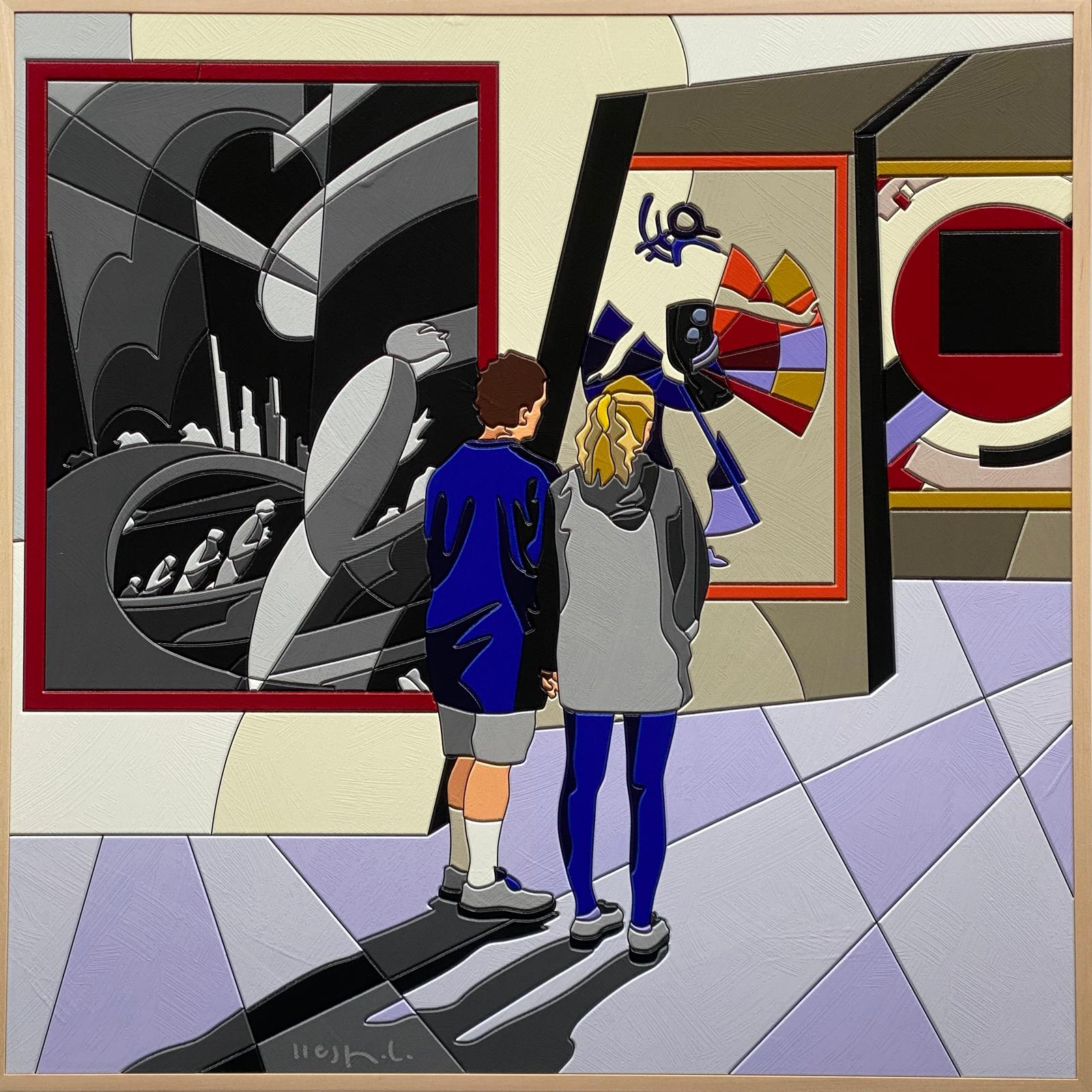 Opera del maestro Ugo Nespolo, realizzata con la sua inconfondibile tecnica di sintesi pittorica e formale.
