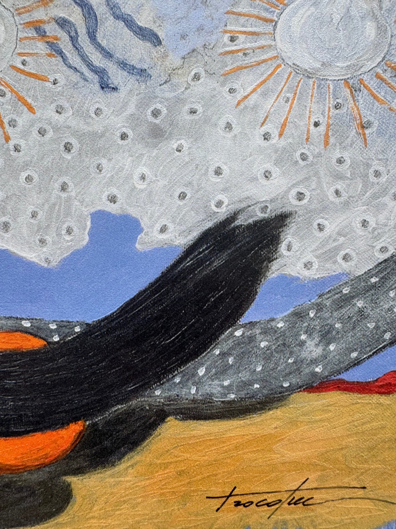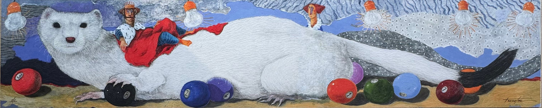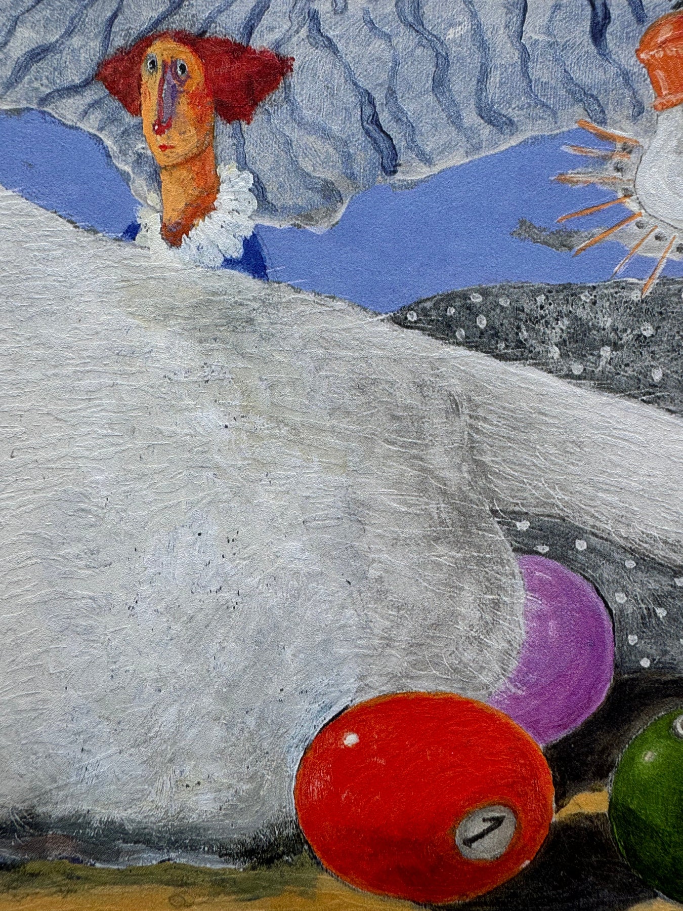L'artista rappresenta gli eventi di ogni giorno in modo surreale, utilizzando l'ironia che da sempre contraddistingue il suo tratto: giocoso, fumettistico e colorato.