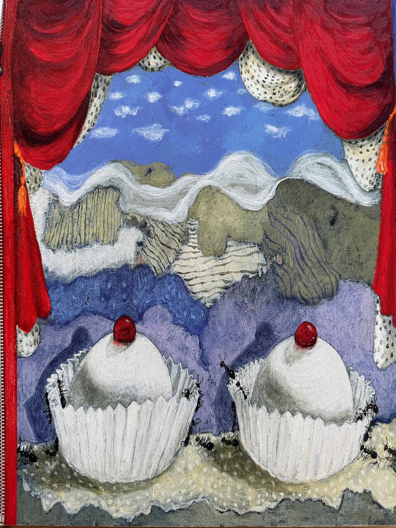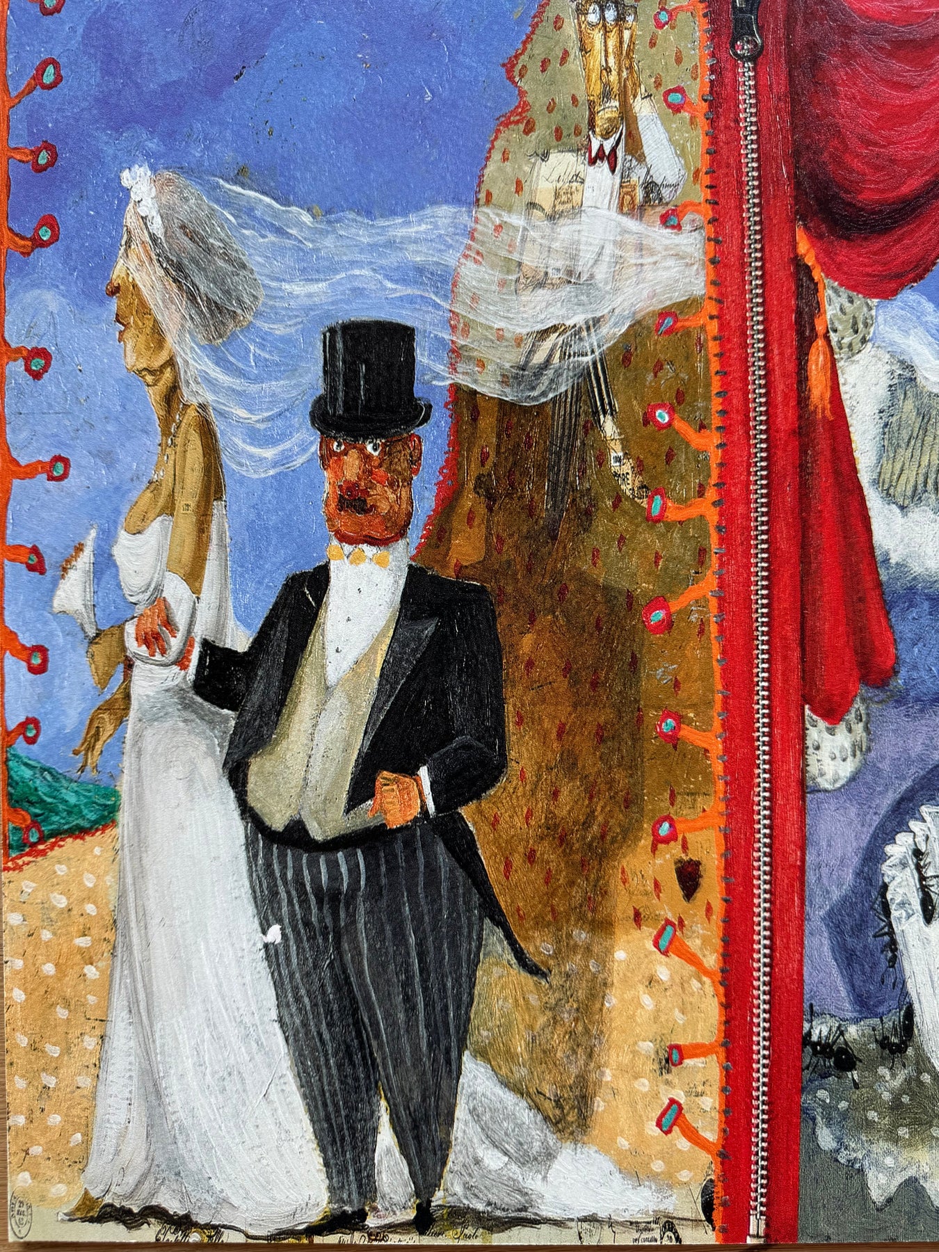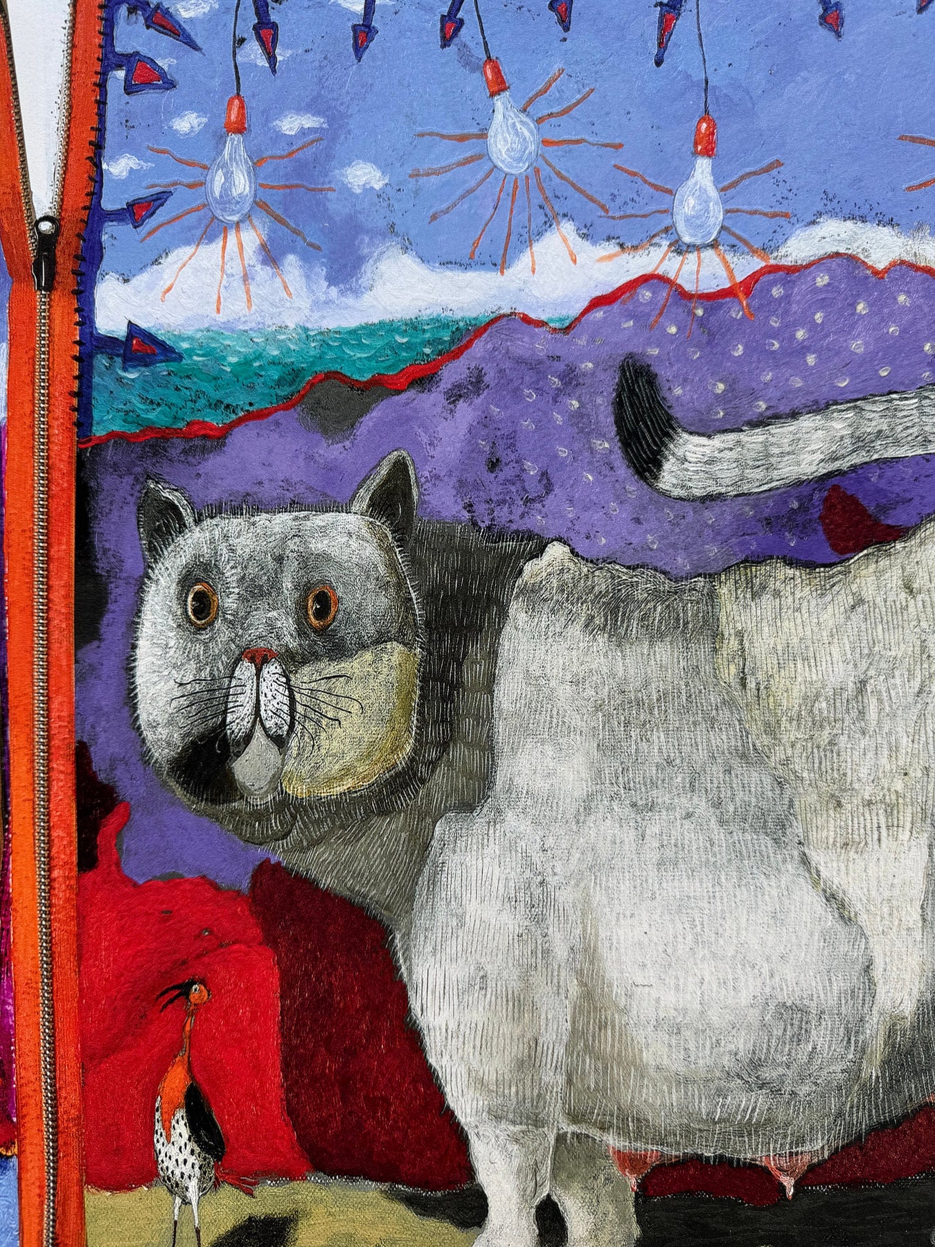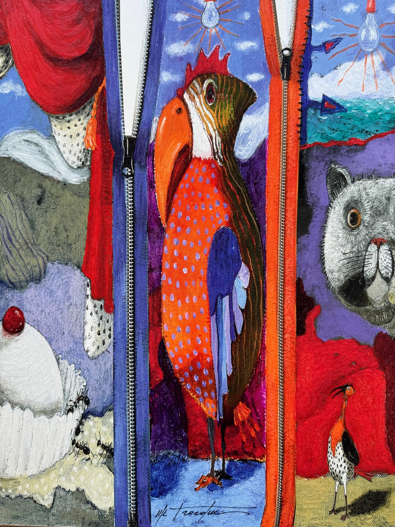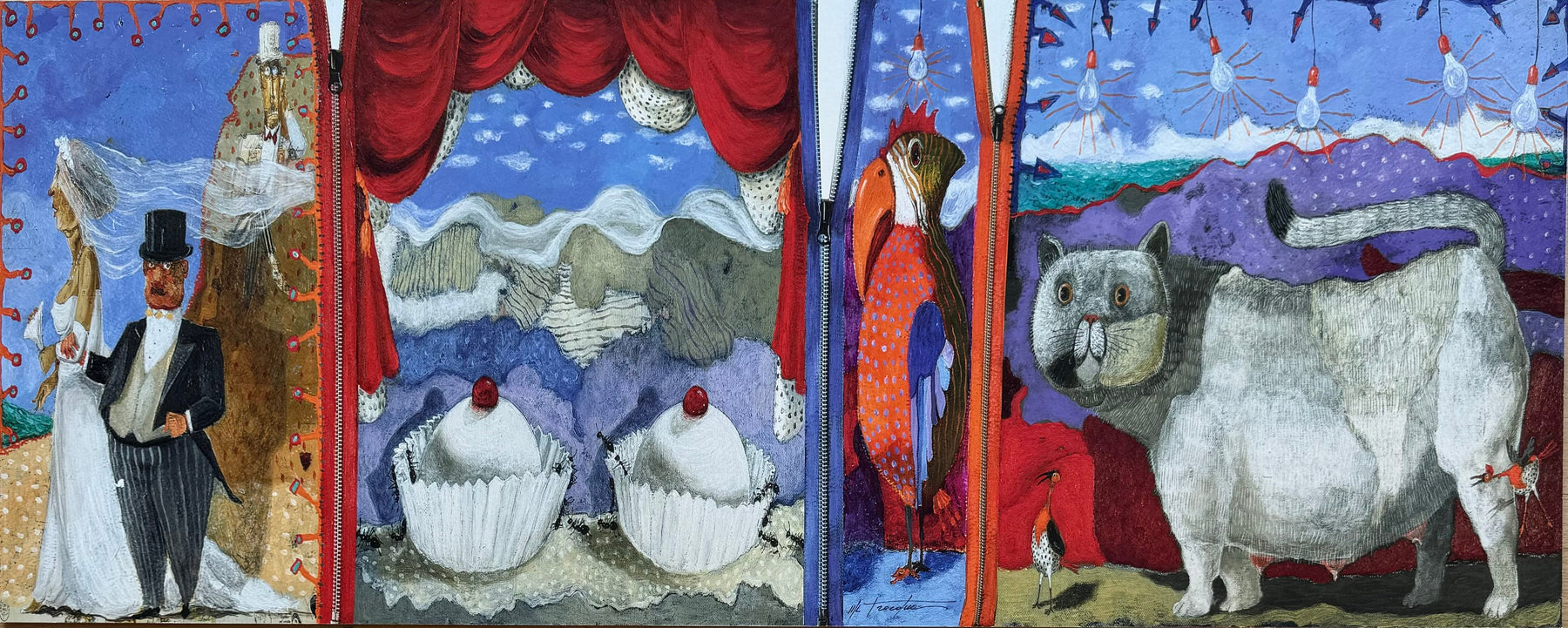 L'artista rappresenta gli eventi di ogni giorno in modo surreale, utilizzando l'ironia che da sempre contraddistingue il suo tratto: giocoso, fumettistico e colorato.