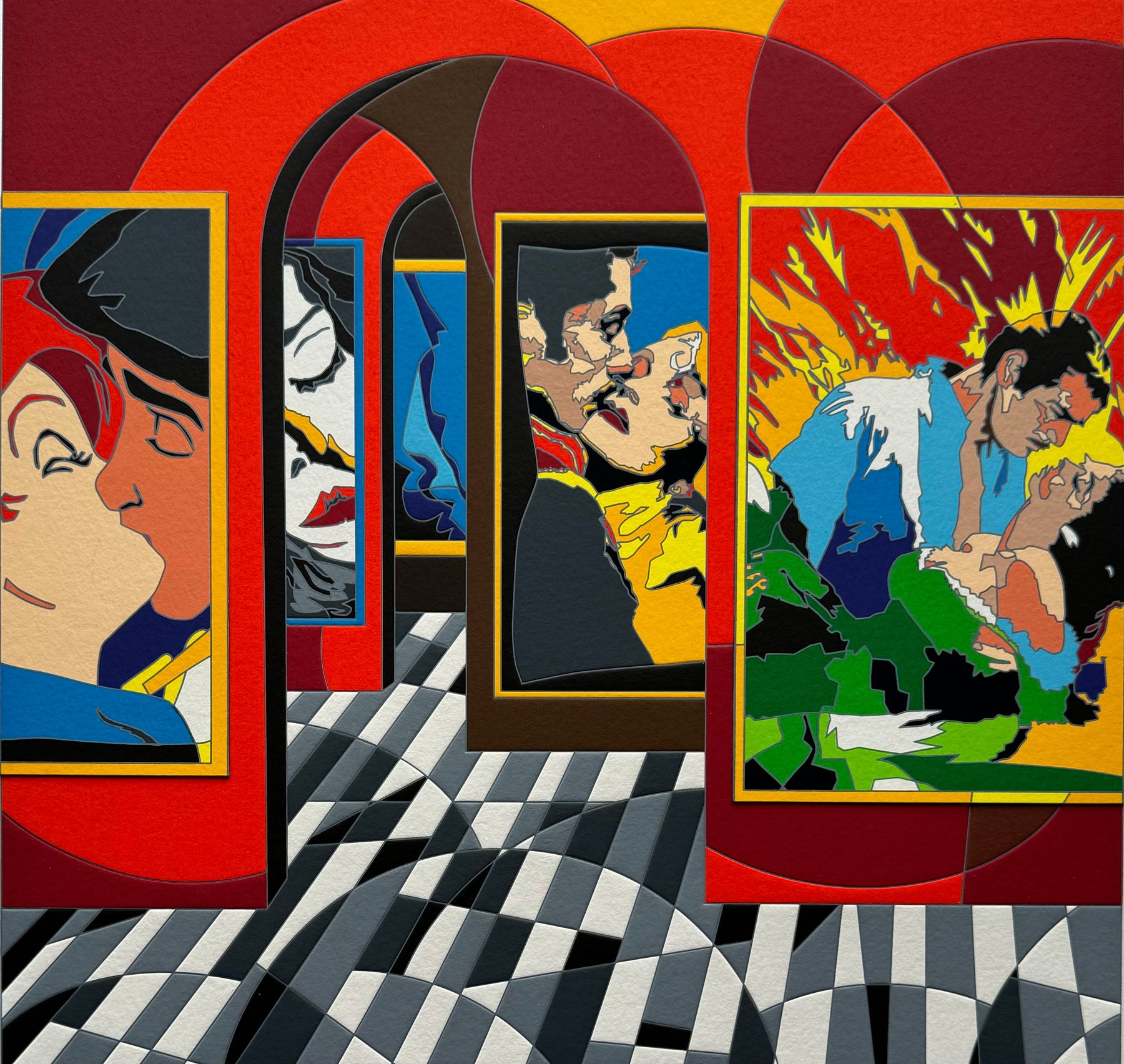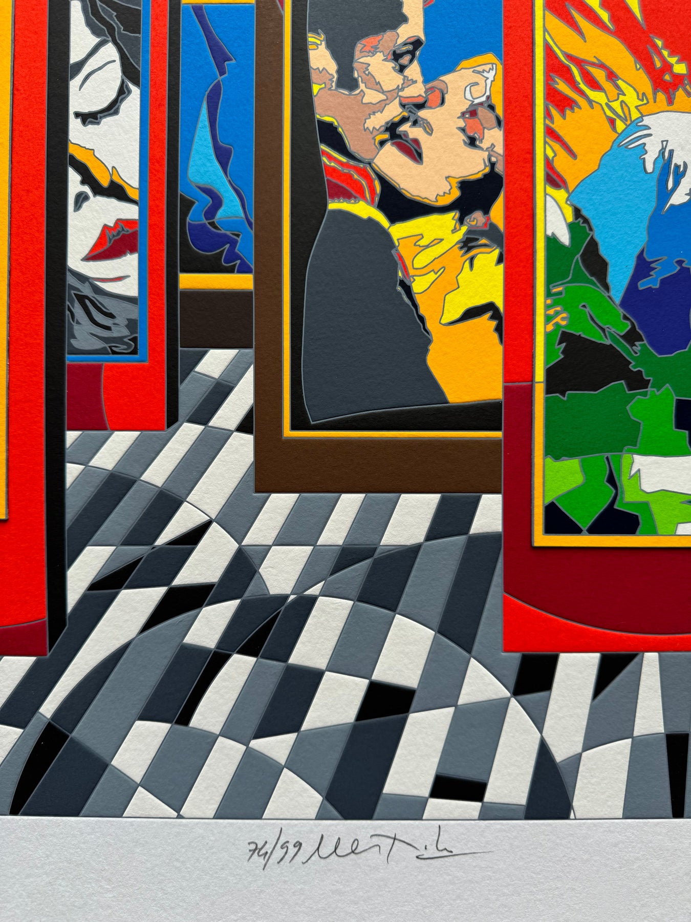 Opera del maestro Ugo Nespolo, realizzata con la sua inconfondibile tecnica di sintesi pittorica e formale.