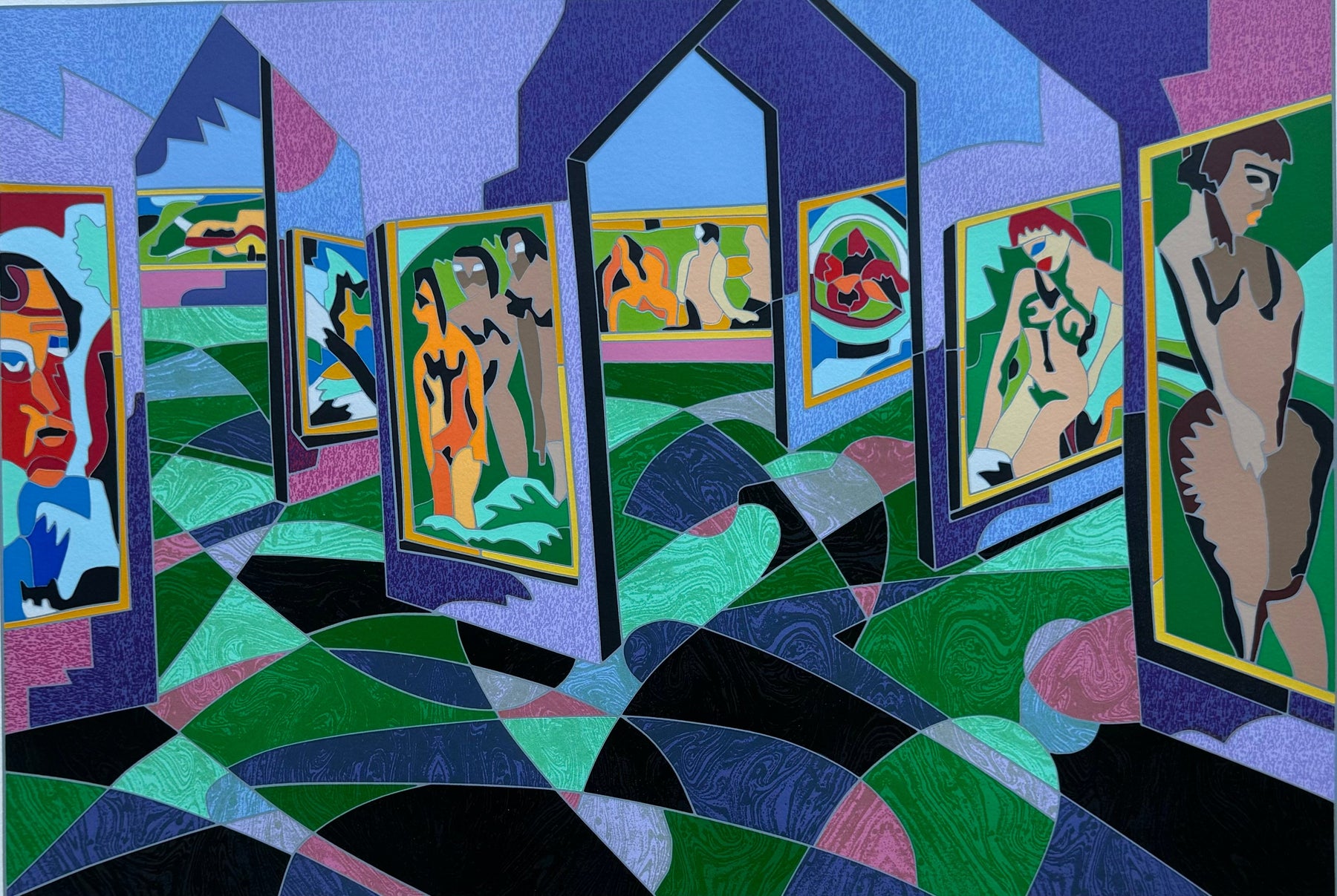 Opera del maestro Ugo Nespolo, realizzata con la sua inconfondibile tecnica di sintesi pittorica e formale.