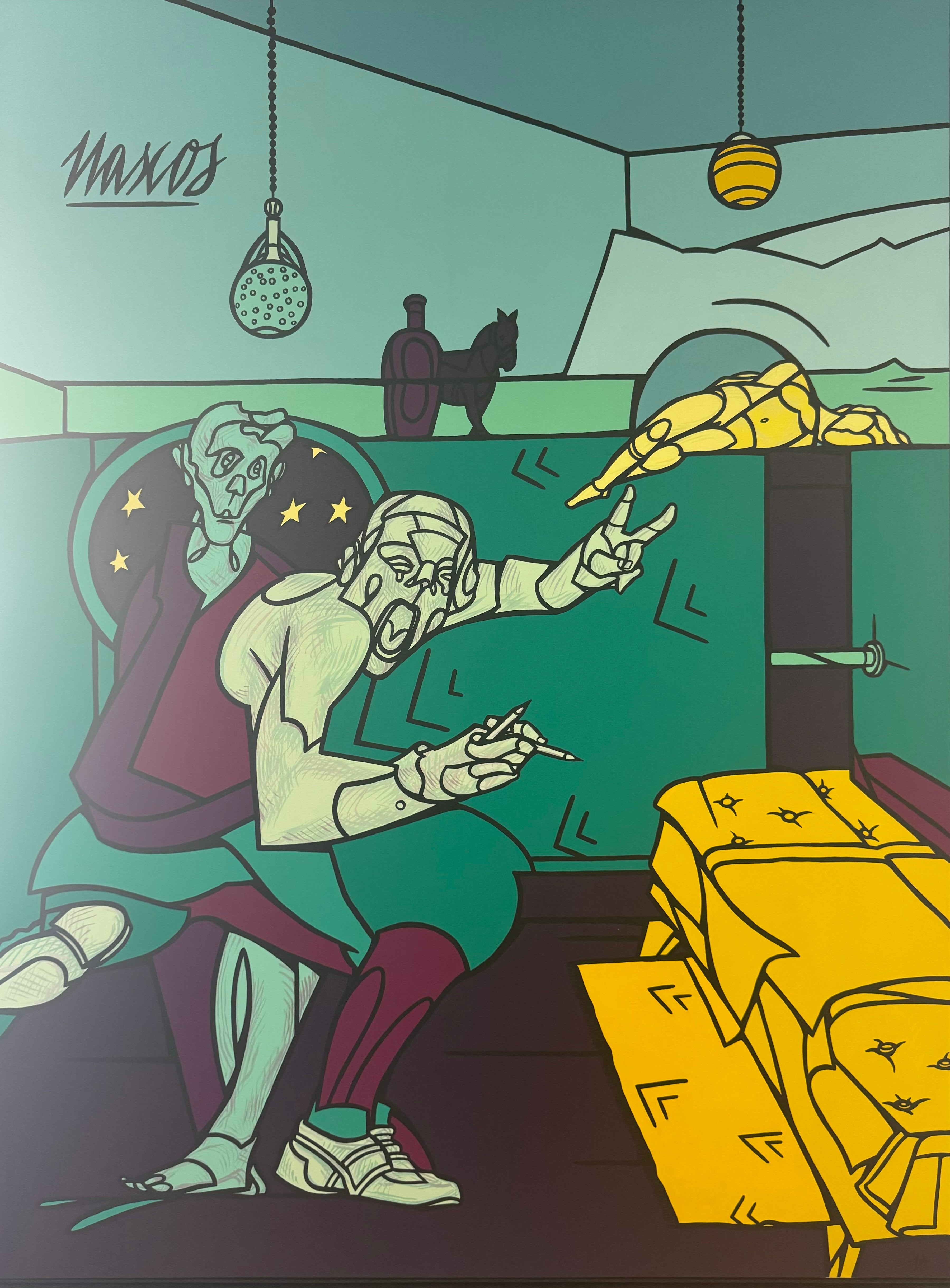 Partito da una pittura espressionista influenzata dall’opera di Francis Bacon, e dalla Pop Art Americana e in particolare da Roy Lichtenstein, sviluppando una sorta di racconto a fumetti fantastico.
