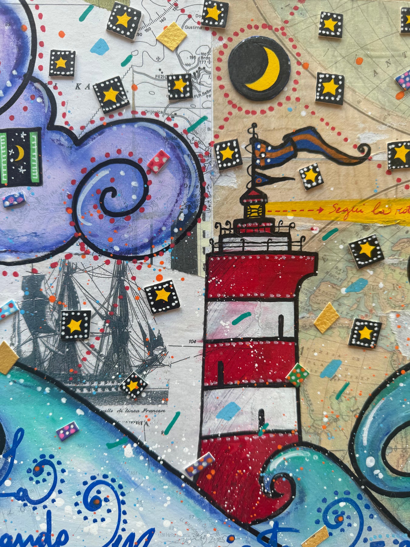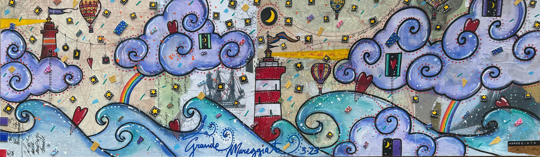 Tecnica mista e collage su cartoncino di dimensioni 30x100cm