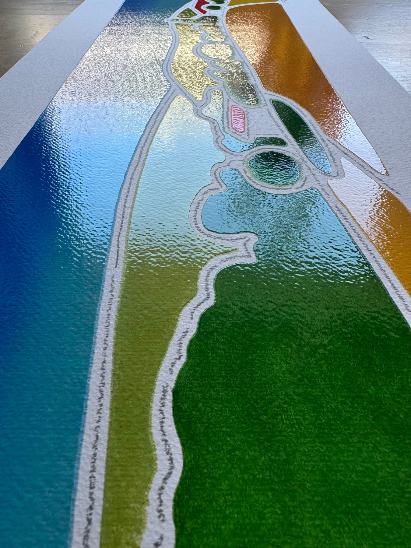 Serigrafia polimaterica con interventi a smalto di dimensioni 42x120 cm.