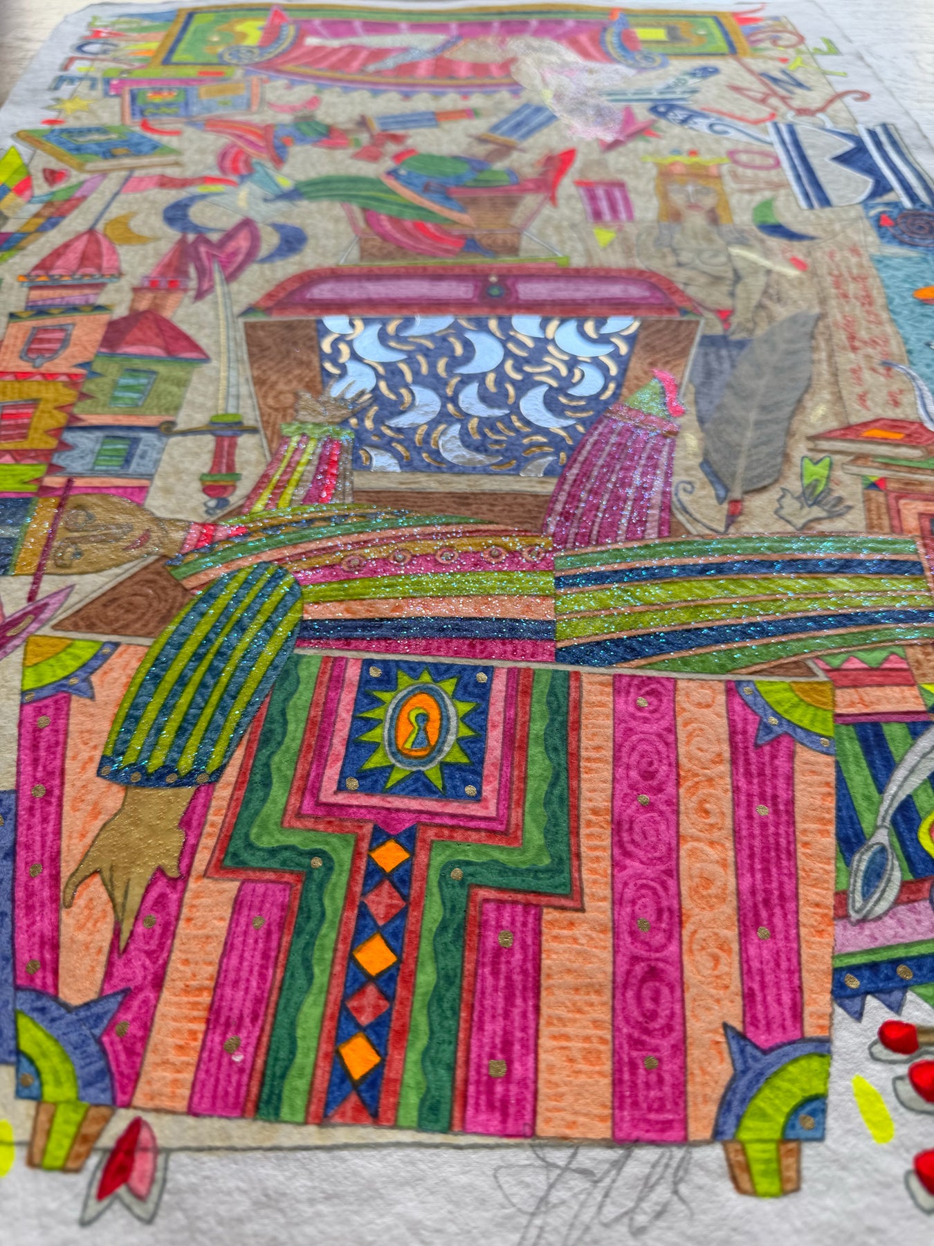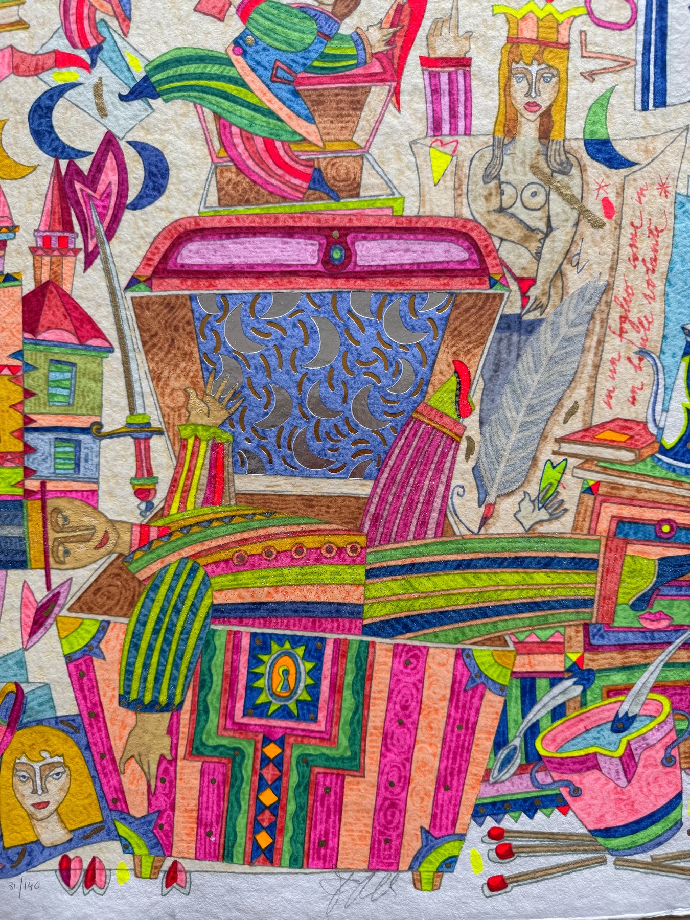 Serigrafia polimaterica del Maestro Francesco Musante con foglia oro, foglia argento, glitter e metalli.