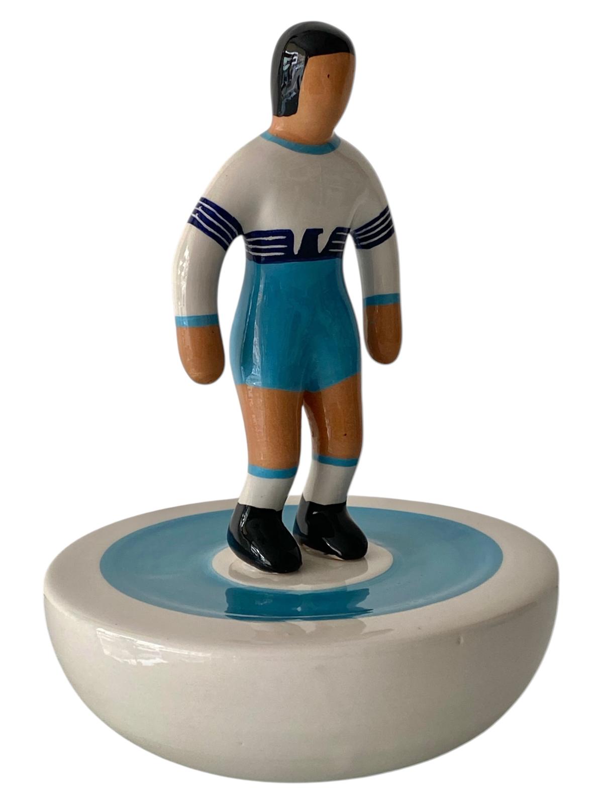 I calciatori di Stefano Puzzo sono realizzati in ceramica come i leggendari omini del subbuteo. Ogni giocatore è un pezzo unico, dalle caratteristiche vintage.
