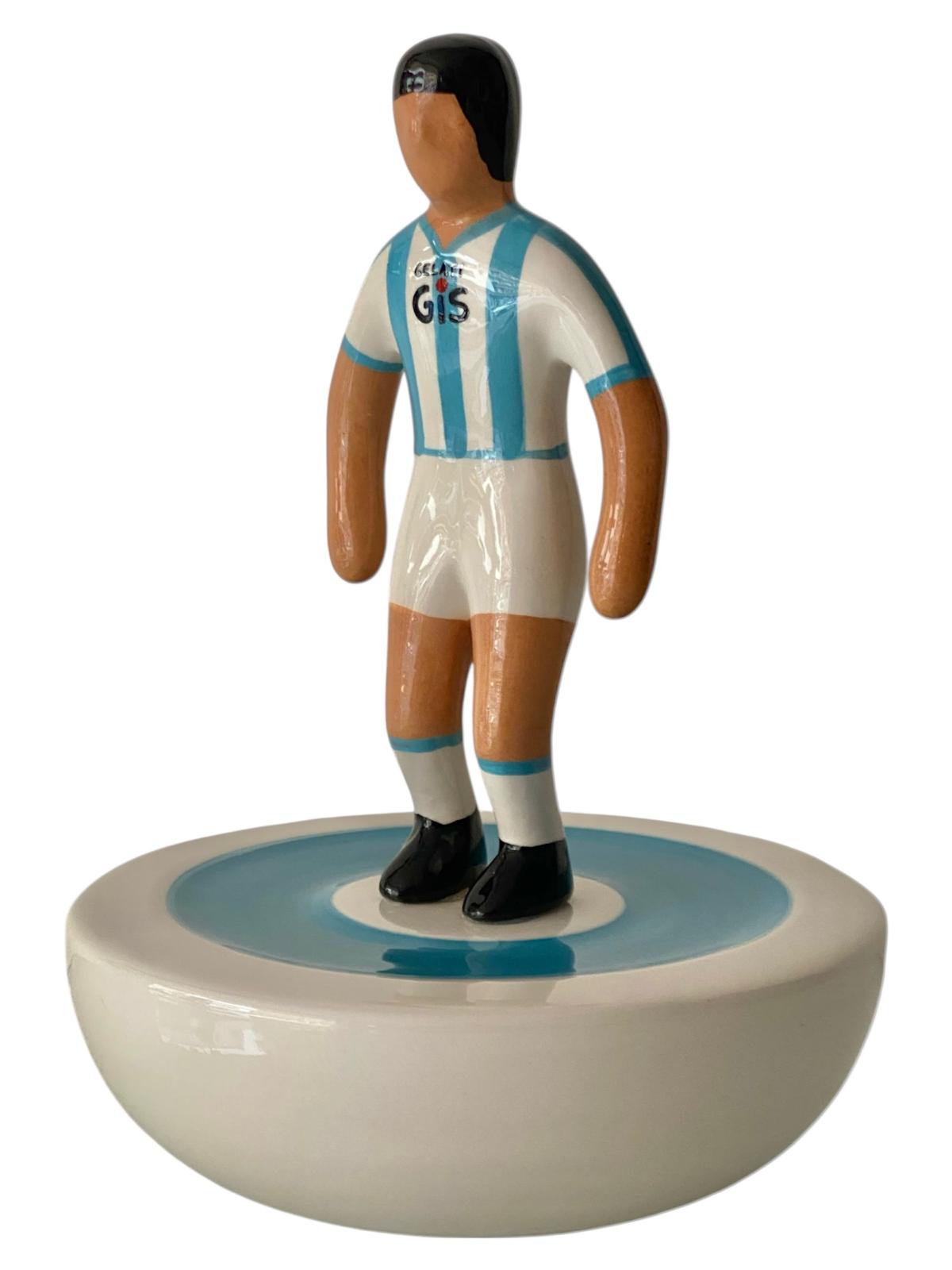 I calciatori di Stefano Puzzo sono realizzati in ceramica come i leggendari omini del subbuteo. Ogni giocatore è un pezzo unico, dalle caratteristiche vintage.