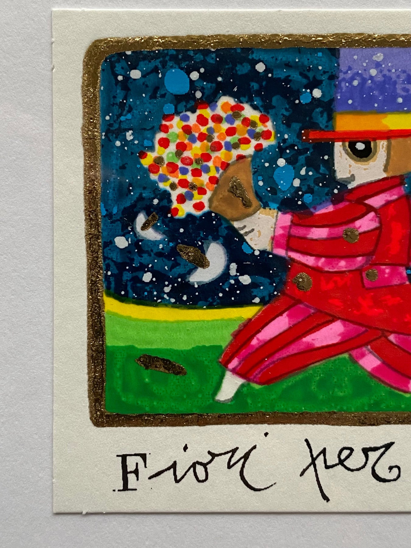 Serigrafia polimaterica del Maestro Francesco Musante con foglia oro, glitter e metalli.