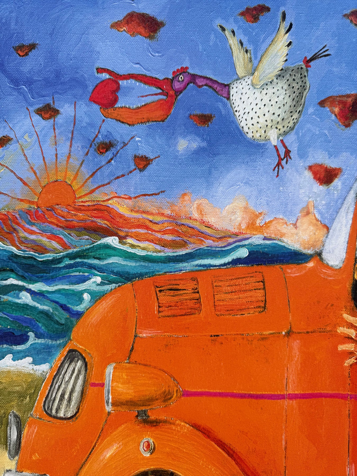 L'artista rappresenta gli eventi di ogni giorno in modo surreale, utilizzando l'ironia che da sempre contraddistingue il suo tratto: giocoso, fumettistico e colorato.