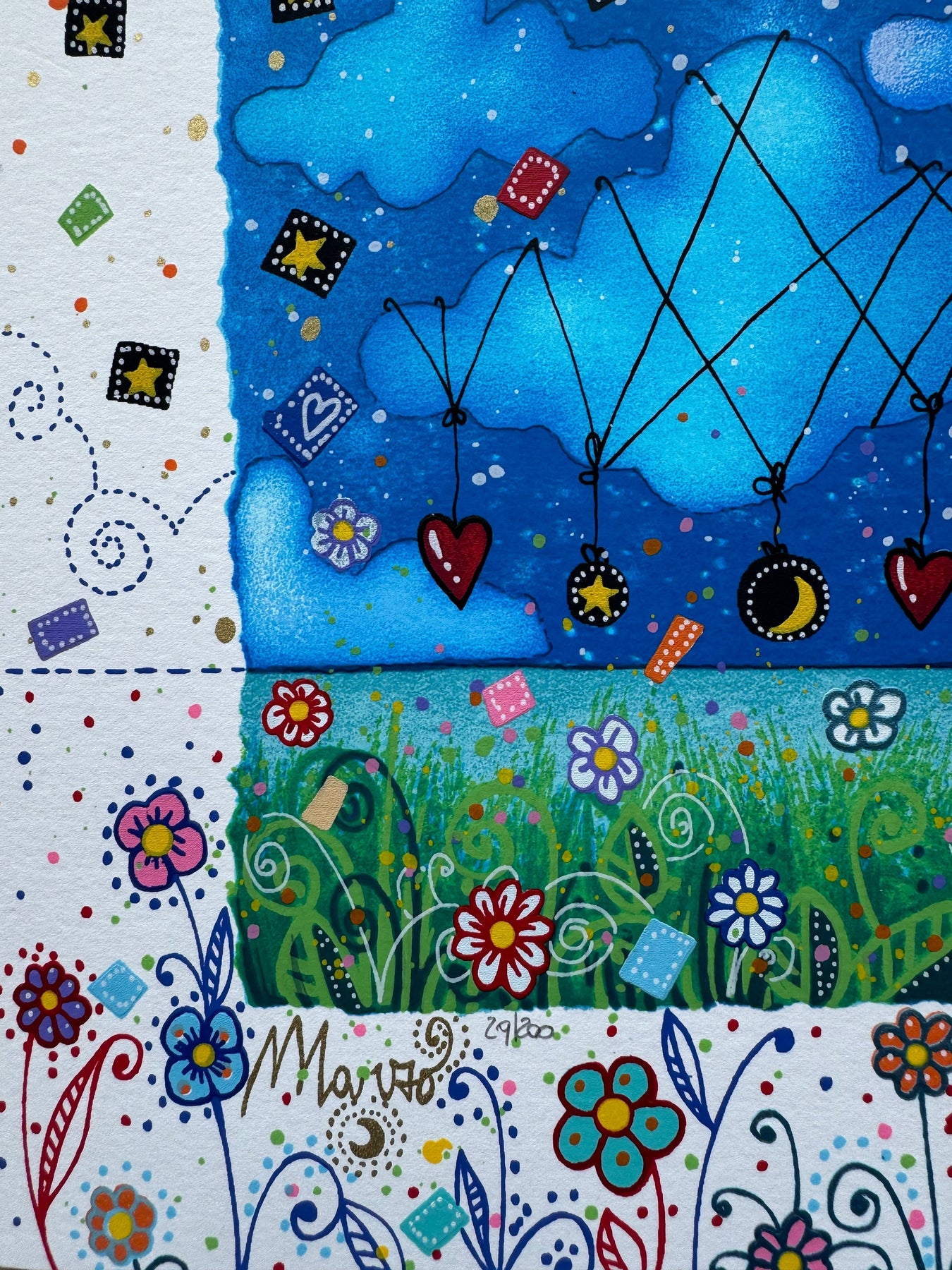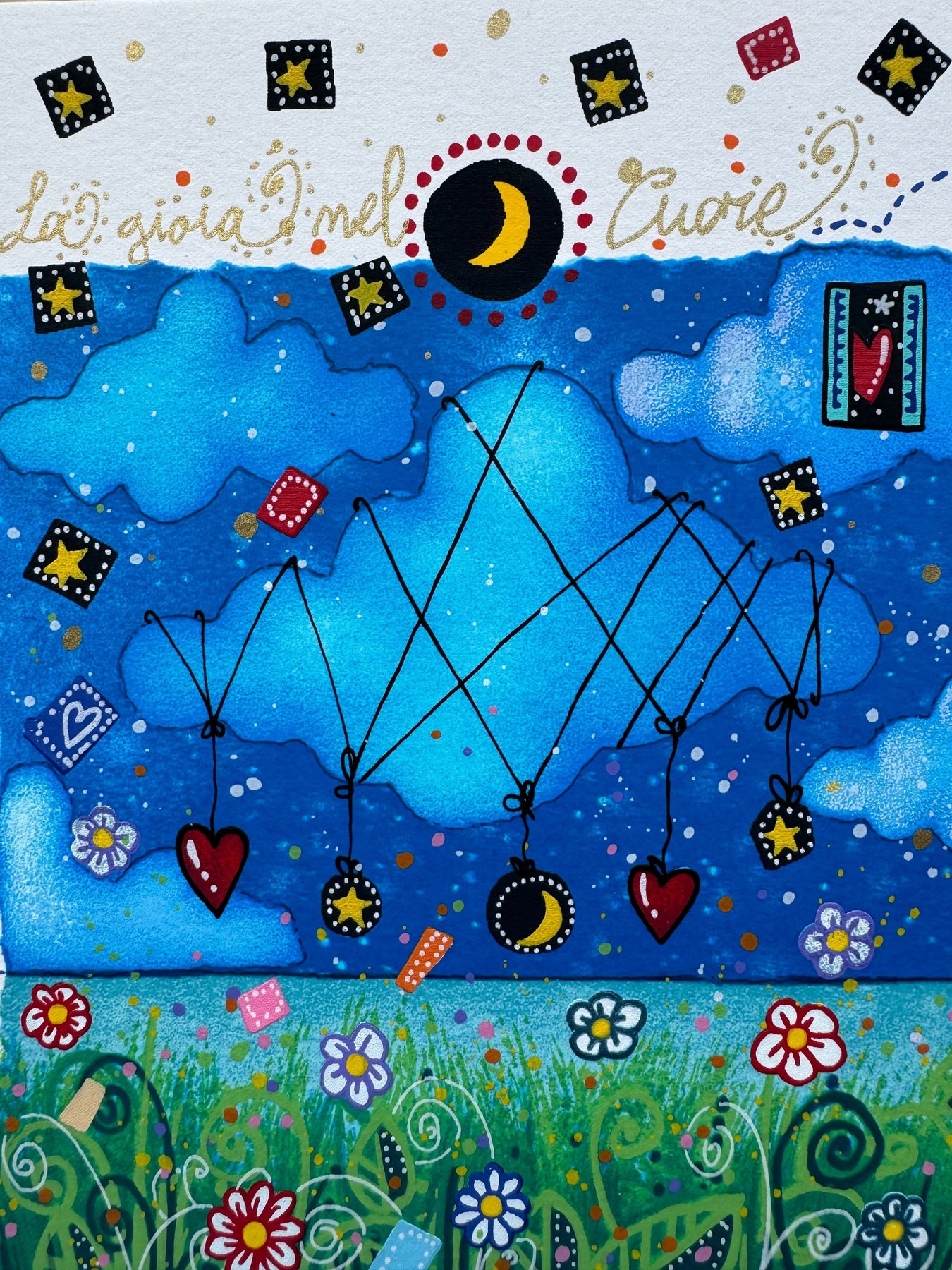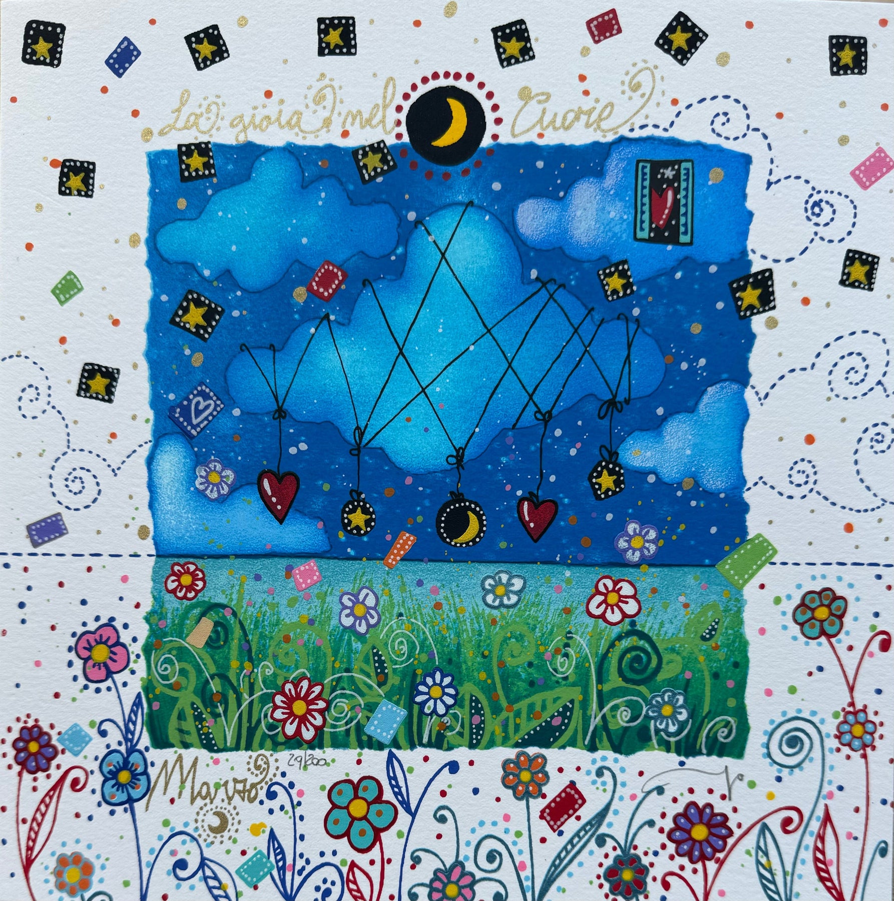 Serigrafia polimaterica di dimensioni 25x25cm, facente parte della nuova cartella "Segui la rotta del cuore".