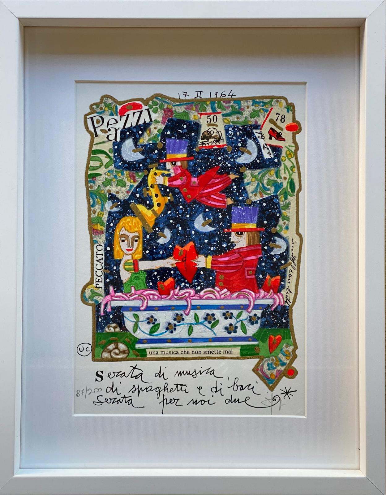 Serigrafia ritoccata su cartoncino da 4mm (possibilità di montaggio a giorno, ovvero senza vetro).