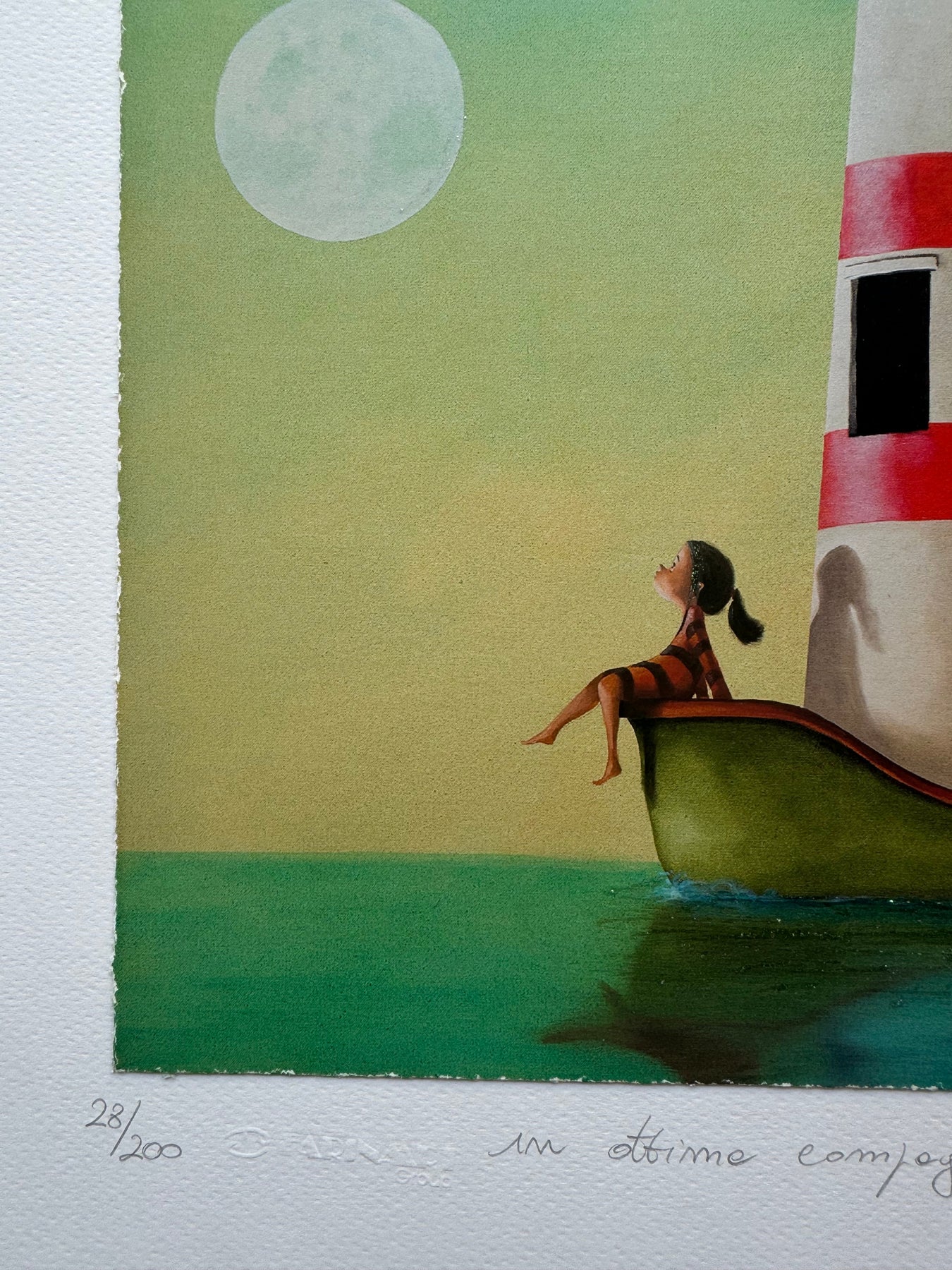 L'opera non comprensiva di cornice. E' possibile sceglierla nella sezione "cornici" scegliendo la dimensione 40x40 cm (calcolo perimetrale).