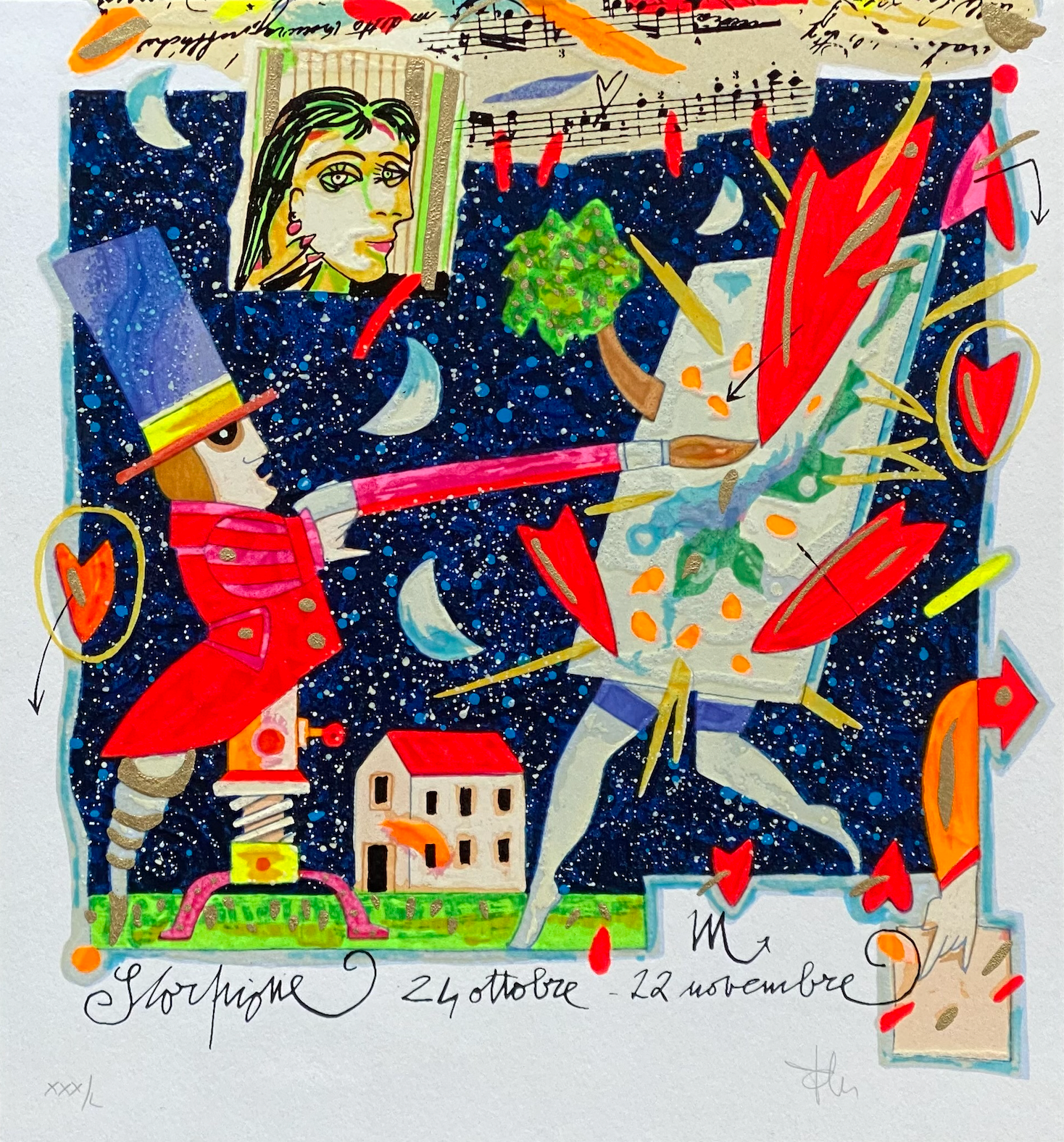 Serigrafia polimaterica del Maestro Francesco Musante con foglia oro, foglia argento, glitter e metalli.