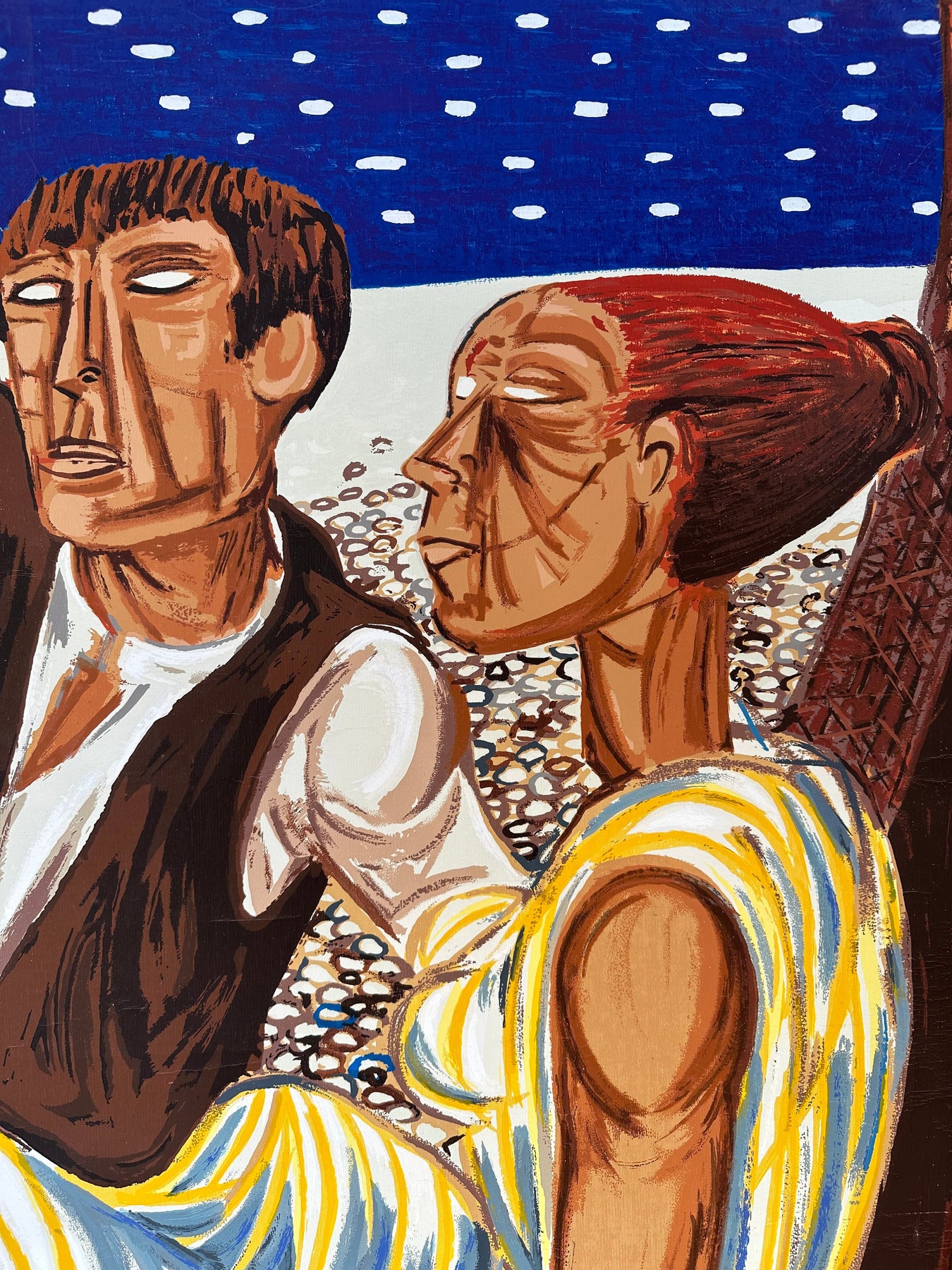 I suoi colori sempre forti e vivaci che ricordano la sua Sicilia dai tratti violenti e netti, i volti duri e coraggiosi rendono le sue tele espressione della lotta esistenziale