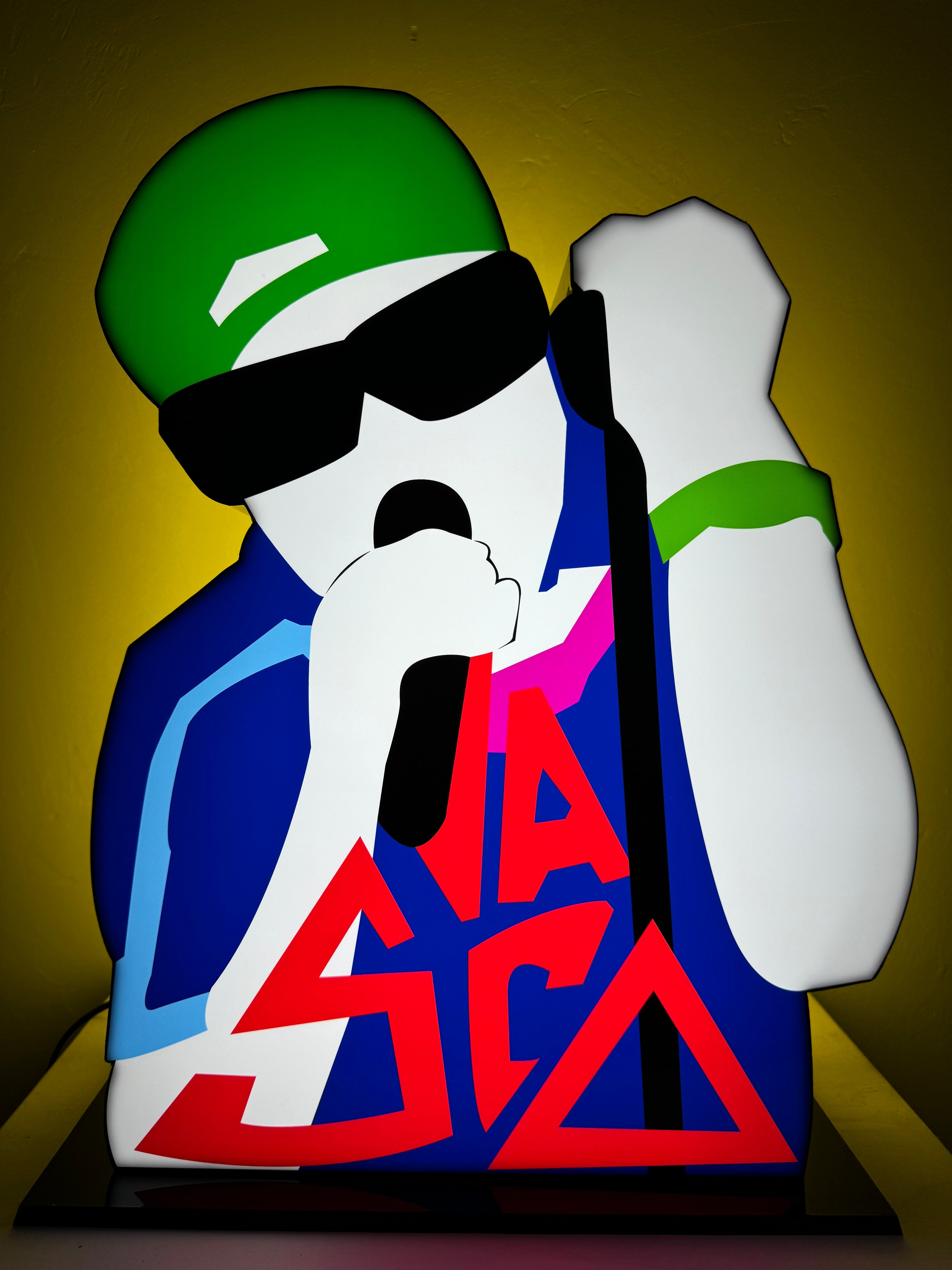 Splendida scultura luminosa del Maestro Marco Lodola, dove gioia e divertimento, magia e fantasia, sono gli ingredienti che caratterizzano il suo percorso creativo. In questa scultura luminosa lavorata in perspex, l'anima pop di Lodola si manifesta appunto per stare in mezzo a noi, parlando con semplicità il nostro linguaggio.