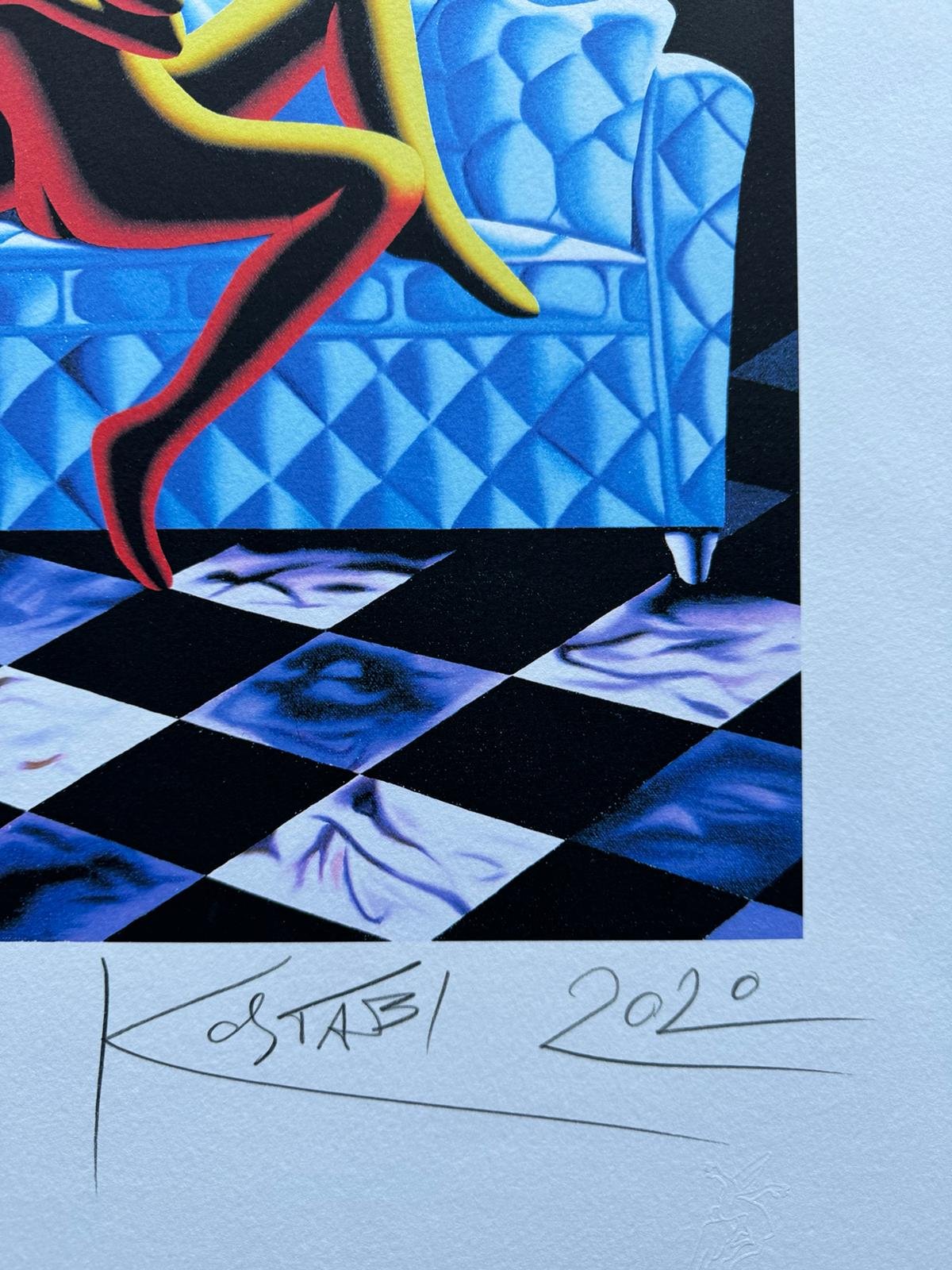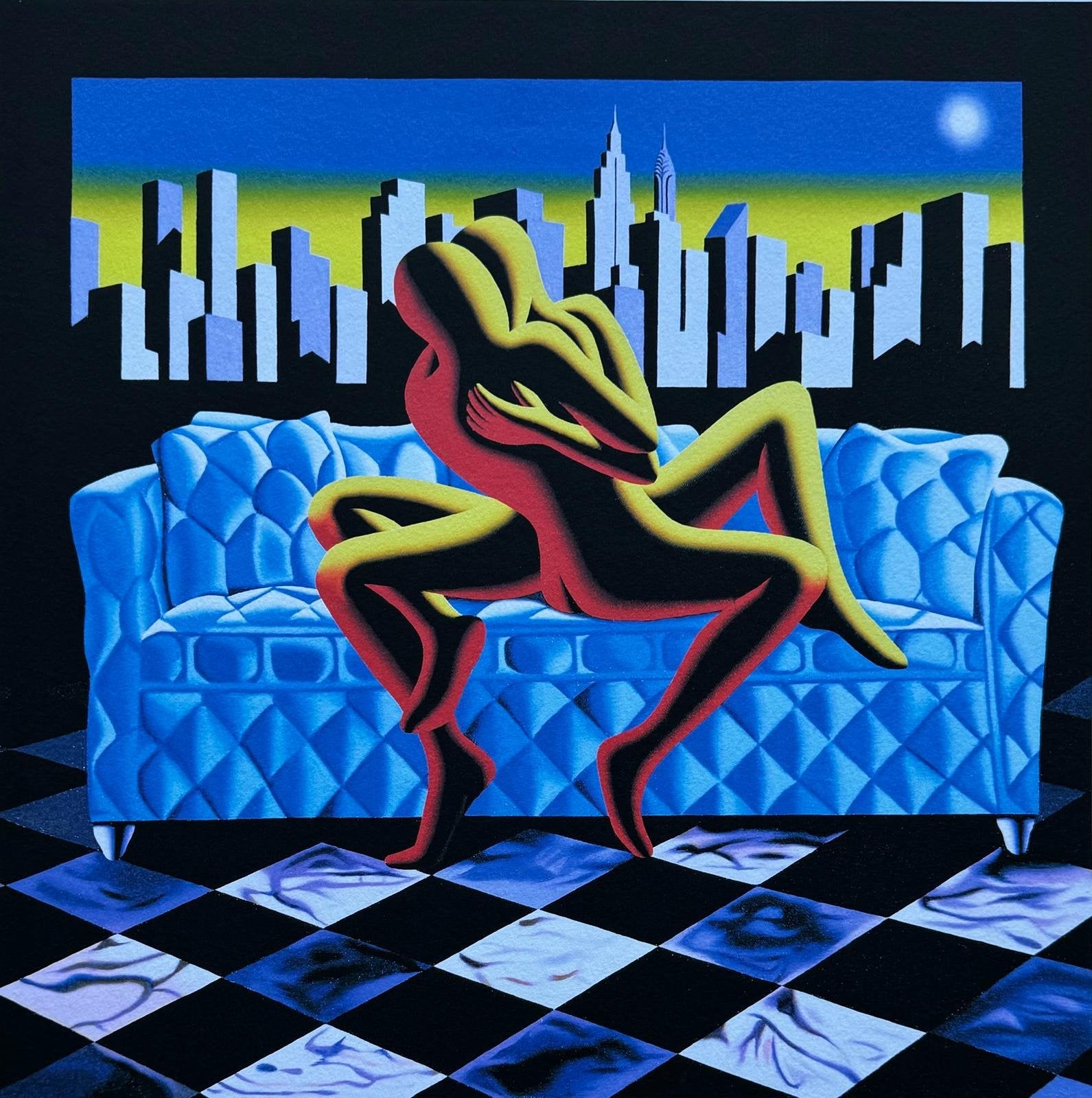 In questo lavoro sono ancora presenti i manichini inspirati all artista da De Chirico, pur mancando compleatamente i tratti somatici si può cogliere l'intima complicità della coppia.