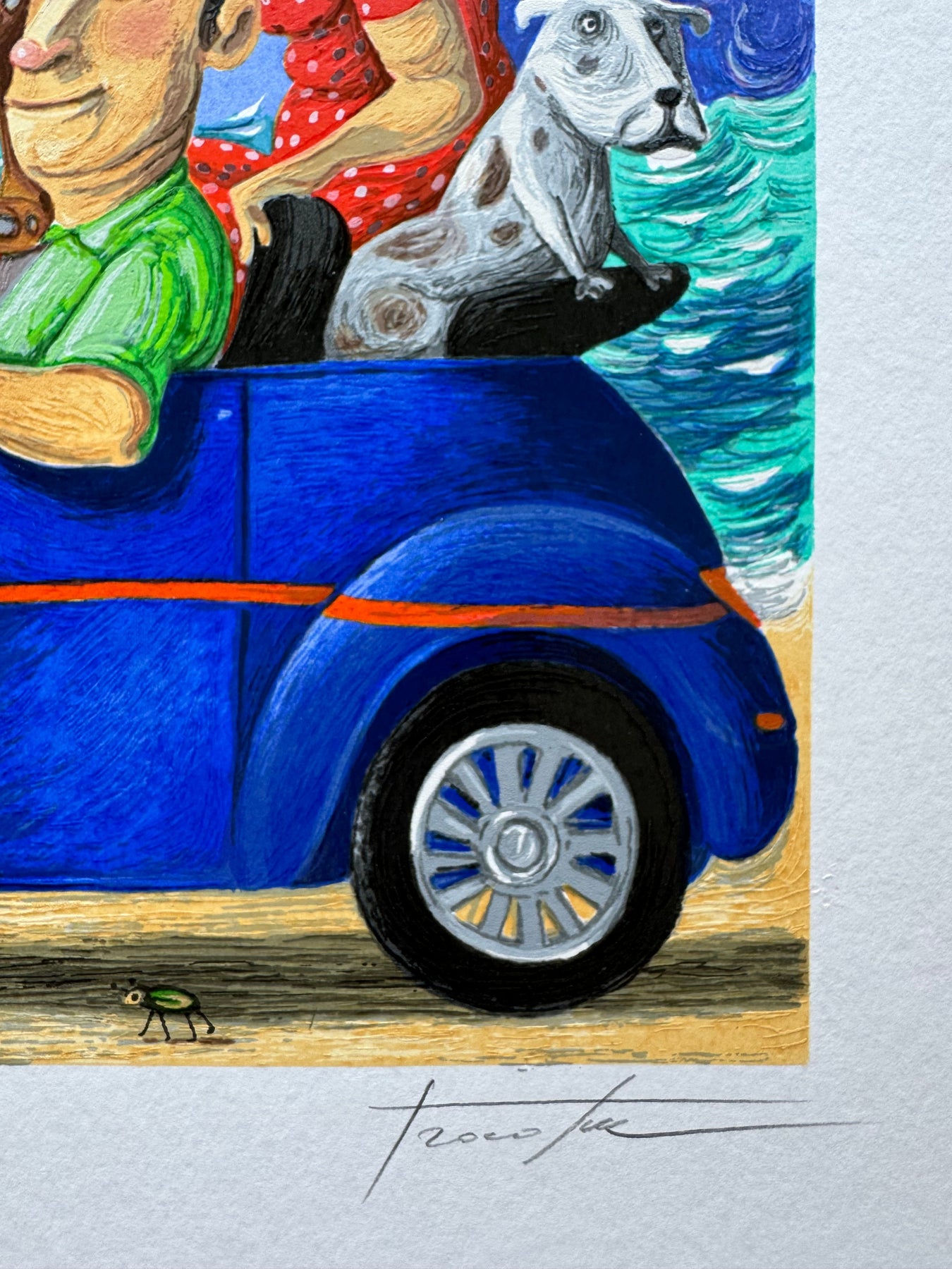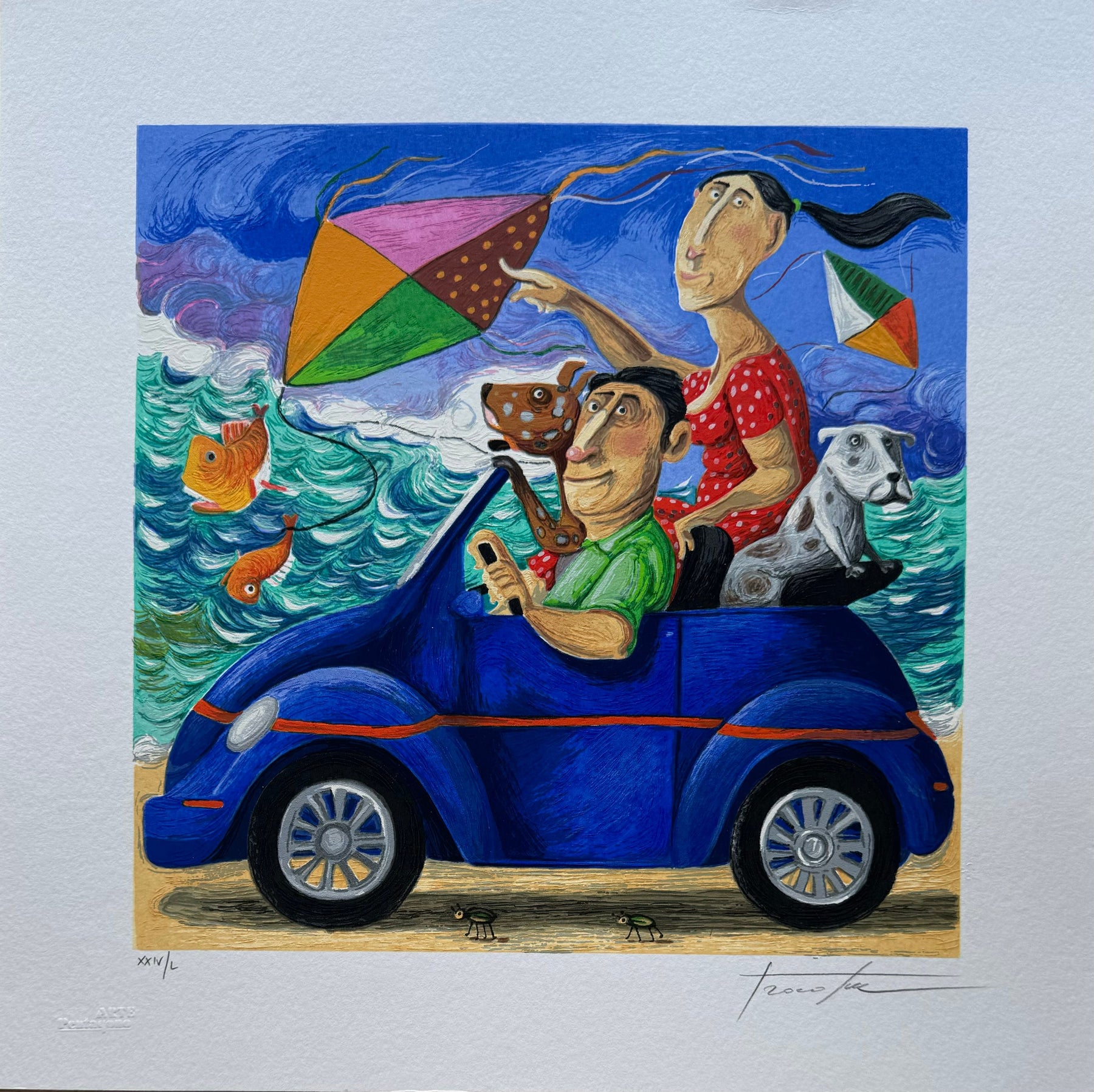 L'artista rappresenta gli eventi di ogni giorno in modo surreale, utilizzando l'ironia che da sempre contraddistingue il suo tratto: giocoso, fumettistico e colorato.