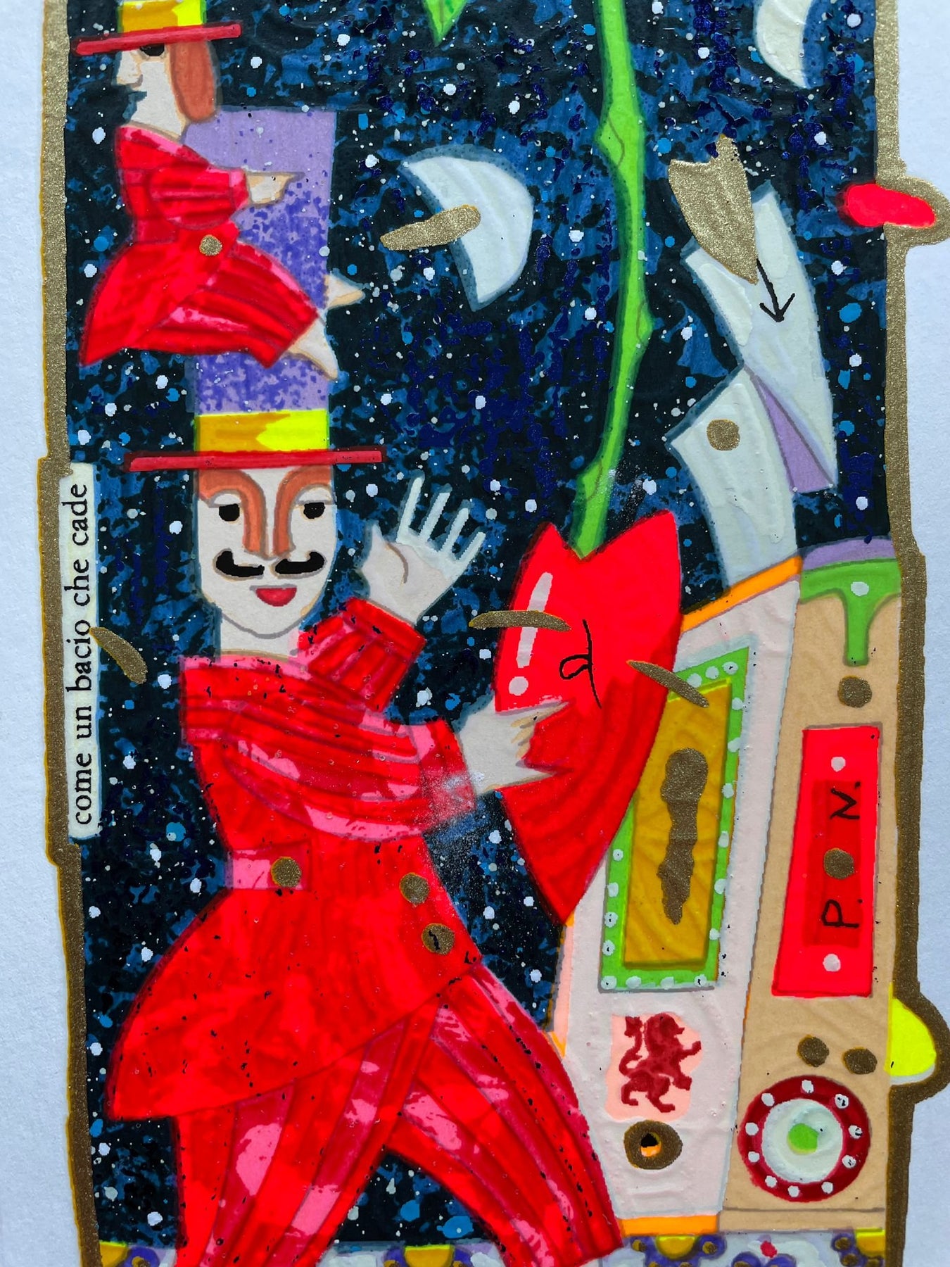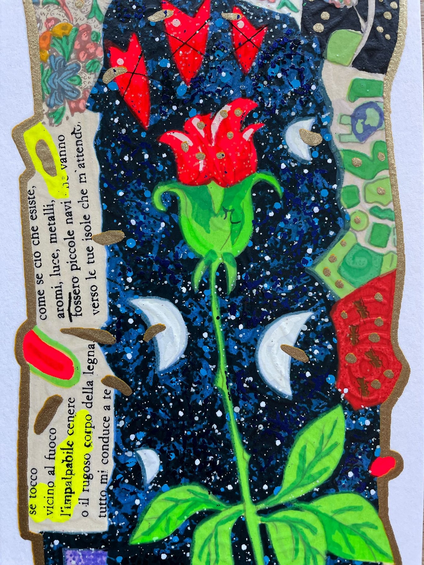 Serigrafia polimaterica del Maestro Francesco Musante con foglia oro, foglia argento, glitter e metalli.