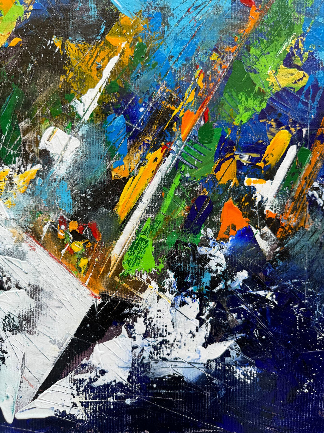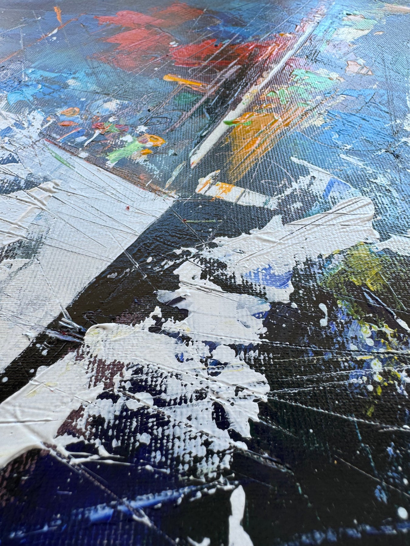 Bellissima opera Unica del Maestro Francesco Toraldo in cui è evidente l’influenza, nel suo stile, dell’Espressionismo astratto americano, in particolar modo di Pollock e dell’action painting.