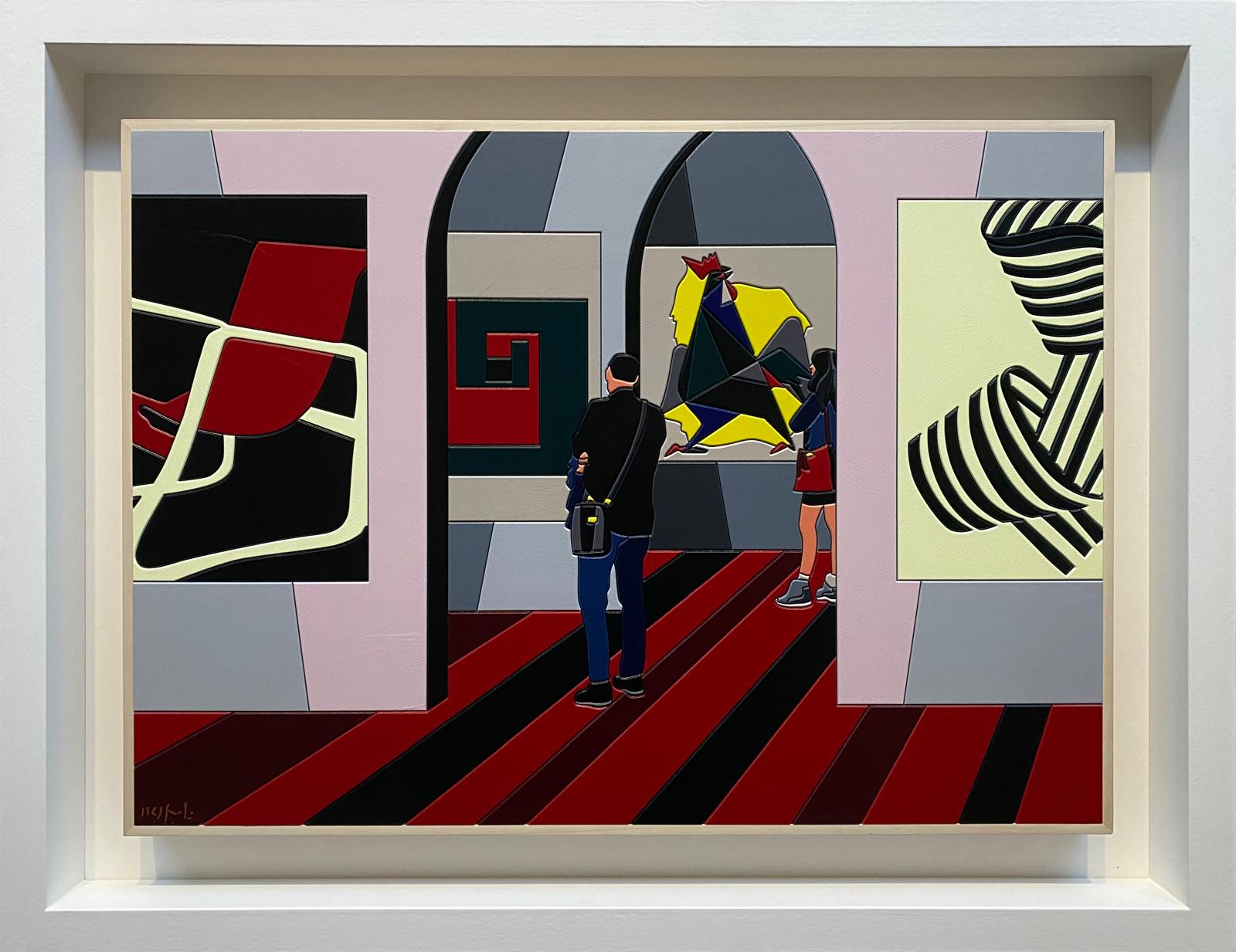 Opera unica di grande qualità del maestro Ugo Nespolo, acrilico su legno, con autentica firmata di pugno dall’artista.