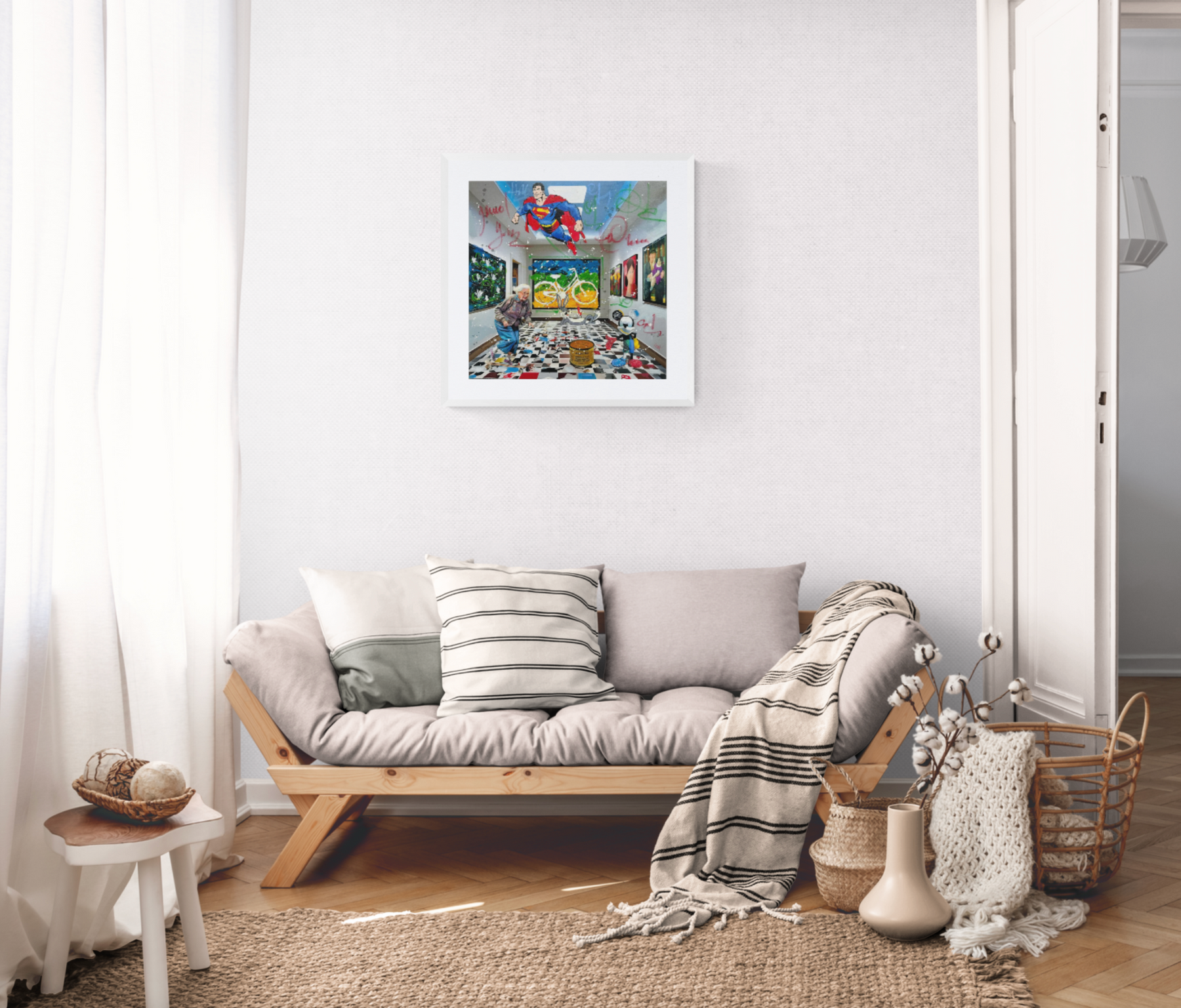 Impreziosisce l'opera una splendida cornice artigianale bianca dipinta interamente a mano dai migliori artigiani locali.